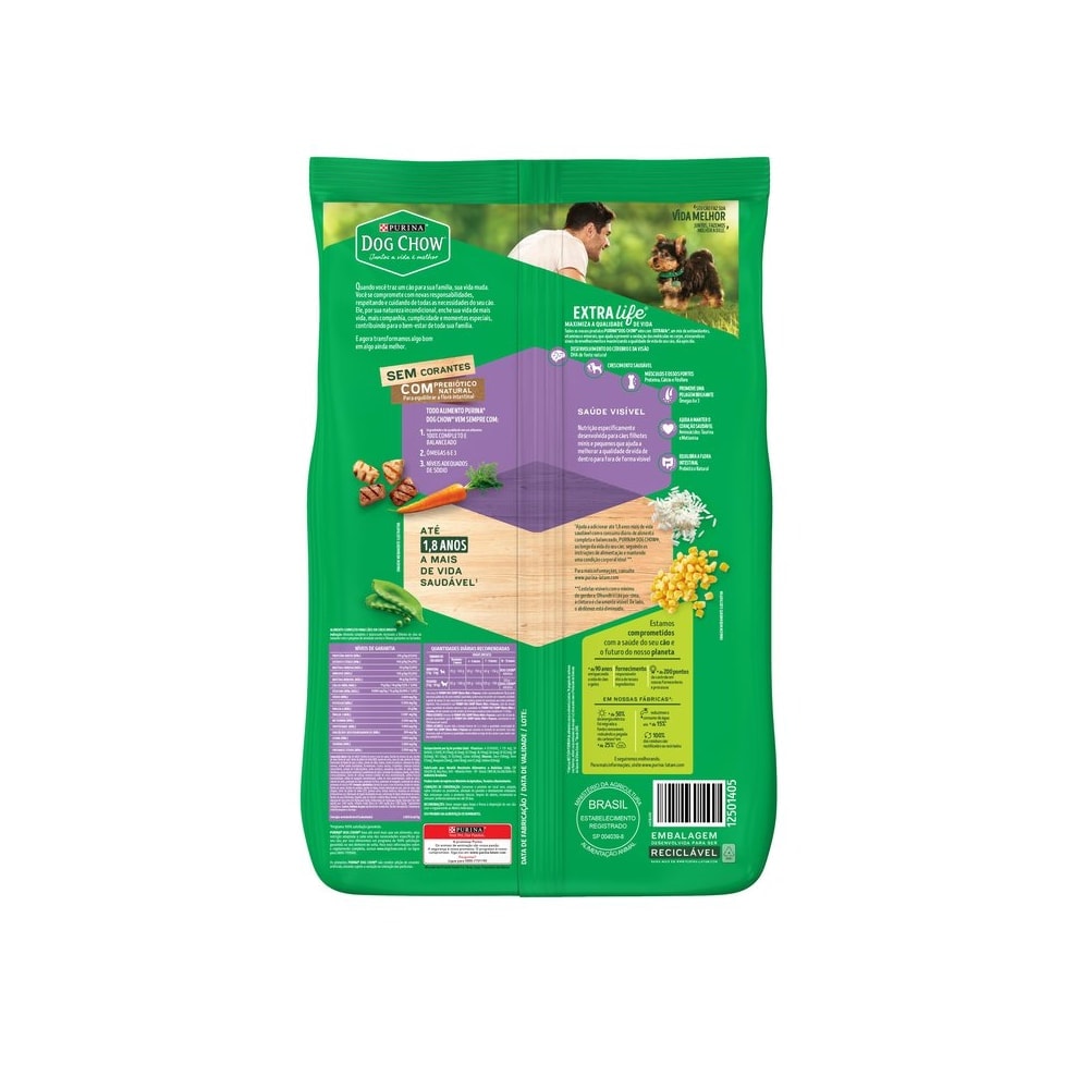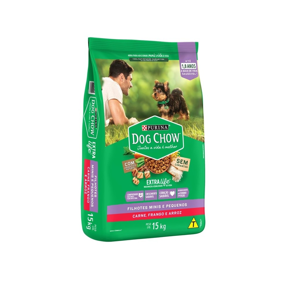 Detalhes do Produto A Ração PURINA® DOG CHOW® tem uma fórmula premium, especialmente desenvolvida para seu filhote, com nutrientes e ingredientes de alta qualidade, assim como o balanço ideal de cálcio e fósforo que ele necessita para um desenvolvimento saudável. PURINA® DOG CHOW® apresenta agora em todos os produtos ExtraLife®, um mix de antioxidantes, vitaminas e minerais, que ajuda a maximizar a qualidade de vida do seu cão dia após dia. Isso porque nós sabemos que o seu pet é um membro especial da sua família e, por essa razão, nós nos importamos com a sua saúde, cuidado e bem-estar. Contém prebiótico e fibras naturais que auxiliam em uma digestão superior, com fezes firmes com odor reduzido. Já o cálcio e o fósforo ajudam no fortalecimento dos ossos e dentes, e os Ômegas 3 e 6, na pele saudável e pelos mais brilhantes. 100% completo e balanceado, é um alimento com multivitaminas e minerais, nutrientes essenciais para o bom funcionamento do metabolismo e que auxiliam o seu pet a ter saúde e vitalidade por muito tempo. Oferecemos um programa de 100% de satisfação garantida ou seu dinheiro de volta. Quando você traz um cão para sua família, sua vida muda. Você se compromete com novas responsabilidades, respeitando e cuidando de todas as necessidades. Ele, por sua natureza incondicional, enche sua vida de mais vida; mais companhia, cumplicidade e momentos especiais, contribuindo para o bem-estar de toda sua família. E agora transformamos algo bom em algo ainda melhor.