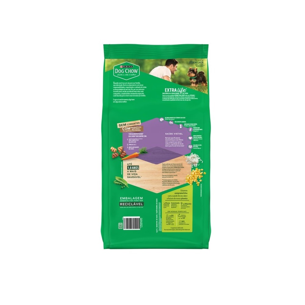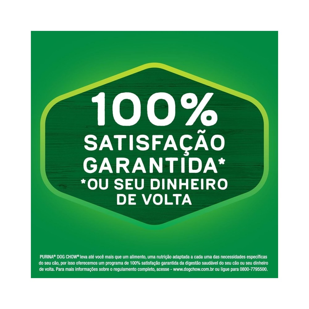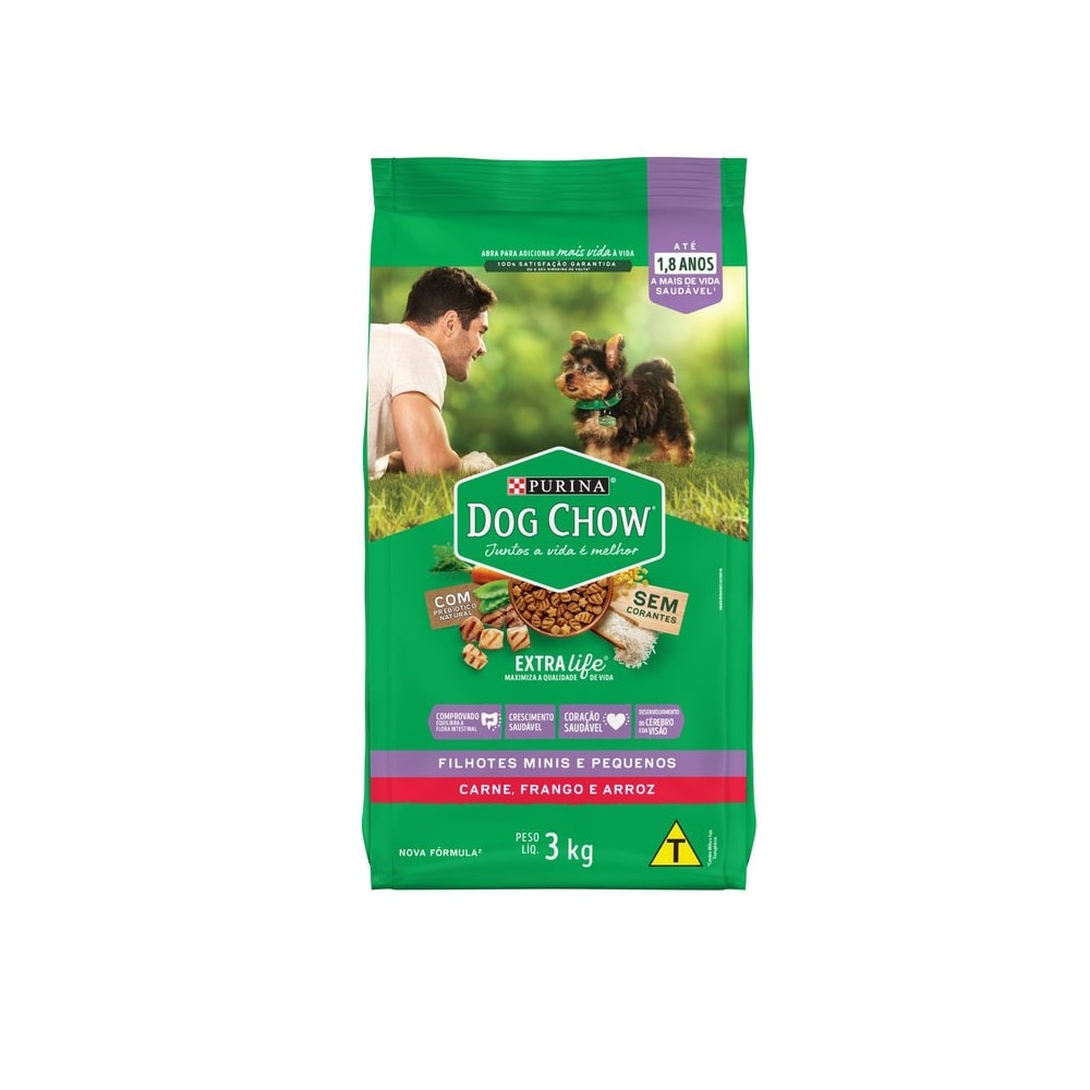 Detalhes do Produto A Ração PURINA® DOG CHOW® tem uma fórmula premium, especialmente desenvolvida para seu filhote, com nutrientes e ingredientes de alta qualidade, assim como o balanço ideal de cálcio e fósforo que ele necessita para um desenvolvimento saudável. PURINA® DOG CHOW® apresenta agora em todos os produtos ExtraLife®, um mix de antioxidantes, vitaminas e minerais, que ajuda a maximizar a qualidade de vida do seu cão dia após dia. Isso porque nós sabemos que o seu pet é um membro especial da sua família e, por essa razão, nós nos importamos com a sua saúde, cuidado e bem-estar. Contém prebiótico e fibras naturais que auxiliam em uma digestão superior, com fezes firmes com odor reduzido. Já o cálcio e o fósforo ajudam no fortalecimento dos ossos e dentes, e os Ômegas 3 e 6, na pele saudável e pelos mais brilhantes. 100% completo e balanceado, é um alimento com multivitaminas e minerais, nutrientes essenciais para o bom funcionamento do metabolismo e que auxiliam o seu pet a ter saúde e vitalidade por muito tempo. Oferecemos um programa de 100% de satisfação garantida ou seu dinheiro de volta. Quando você traz um cão para sua família, sua vida muda. Você se compromete com novas responsabilidades, respeitando e cuidando de todas as necessidades. Ele, por sua natureza incondicional, enche sua vida de mais vida; mais companhia, cumplicidade e momentos especiais, contribuindo para o bem-estar de toda sua família. E agora transformamos algo bom em algo ainda melhor.