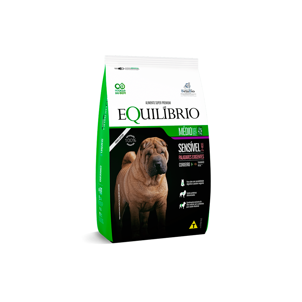A Ração Equilíbrio para Cachorro Adulto Sensível de Médio Porte Sabor Cordeiro 12kg é um alimento Super Premium completo com opções para todas as fases da vida que entrega a mais sofisticada e atualizada nutrição através de dietas de alto desempenho, desenvolvidas para pets com diferentes portes e necessidades. A alta palatabilidade da linha agrada até os paladares mais exigentes. Alimento completo super premium para cães.