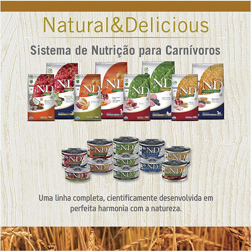 Detalhes Do Produto A Ração Farmina N&D Ancestral Grain Frango Cães Adultos Raças Pequenas é um alimento com baixo índice glicêmico, possui apenas cereais ancestrais em pequena quantidade, que resulta em um produto com nível de amido reduzido, por isso promove menor oscilação da resposta glicêmica. Possui 90% de ingredientes de origem animal e livre de transgênico. Uma ração cientificamente elaborada para respeitar a natureza e o metabolismo de seu pet.