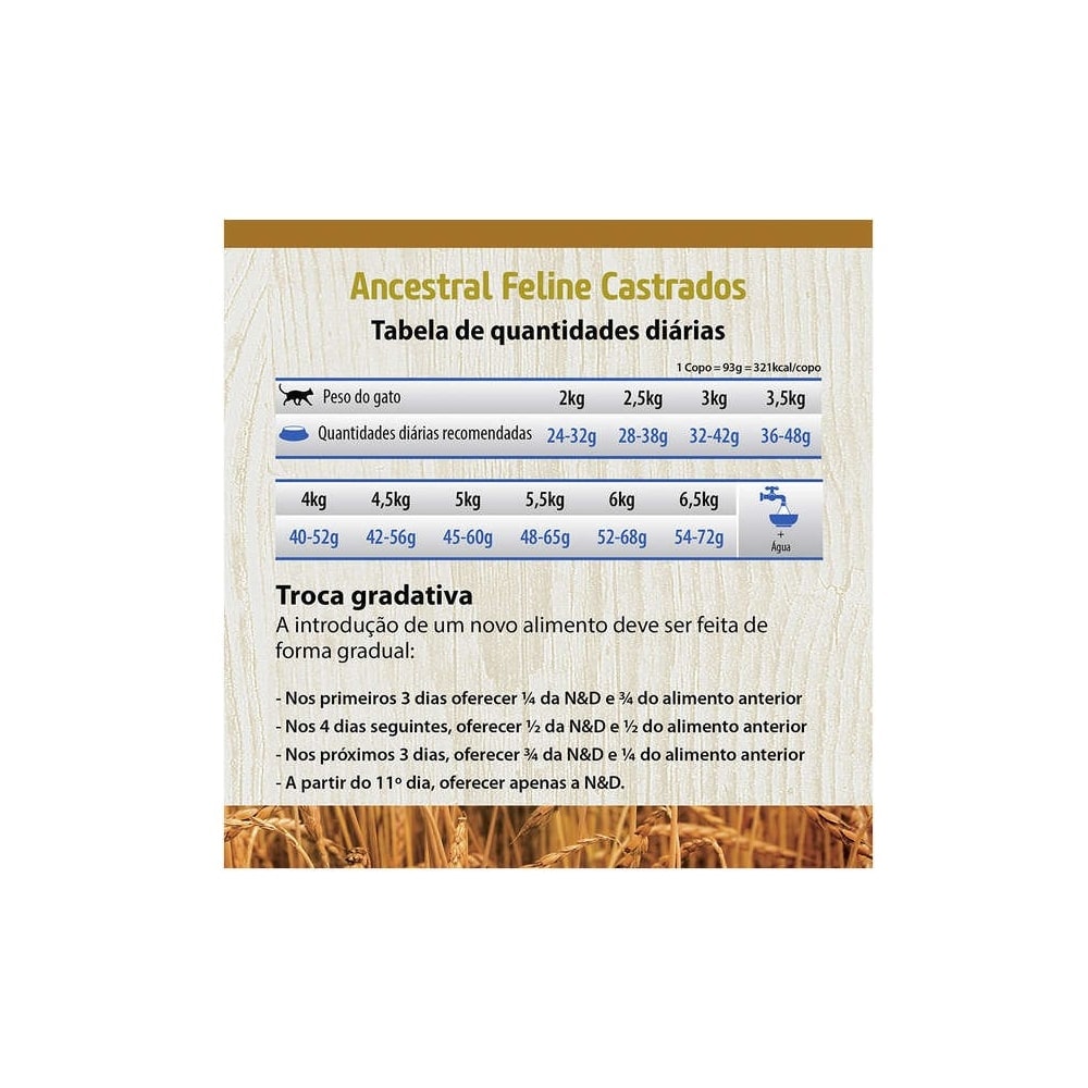 A partir do 11º dia ofereça apenas a Ração Farmina N&D Ancestral Grain Frango Gatos Adultos Castrados