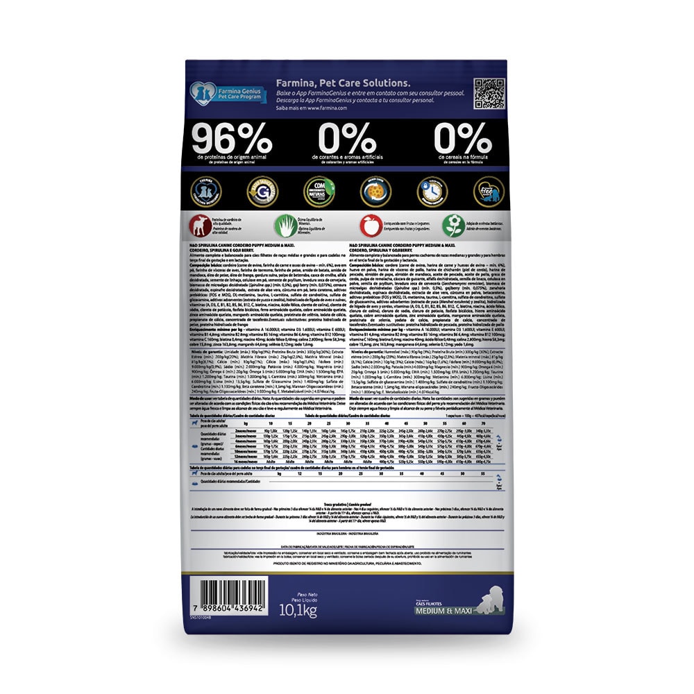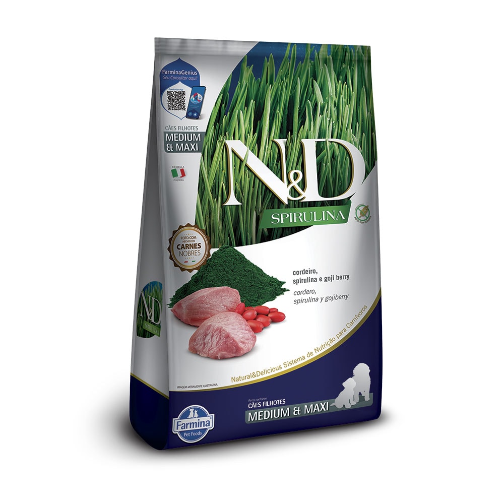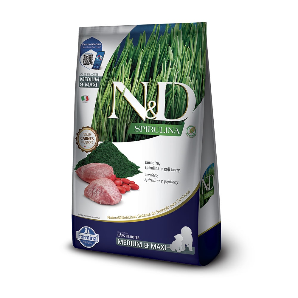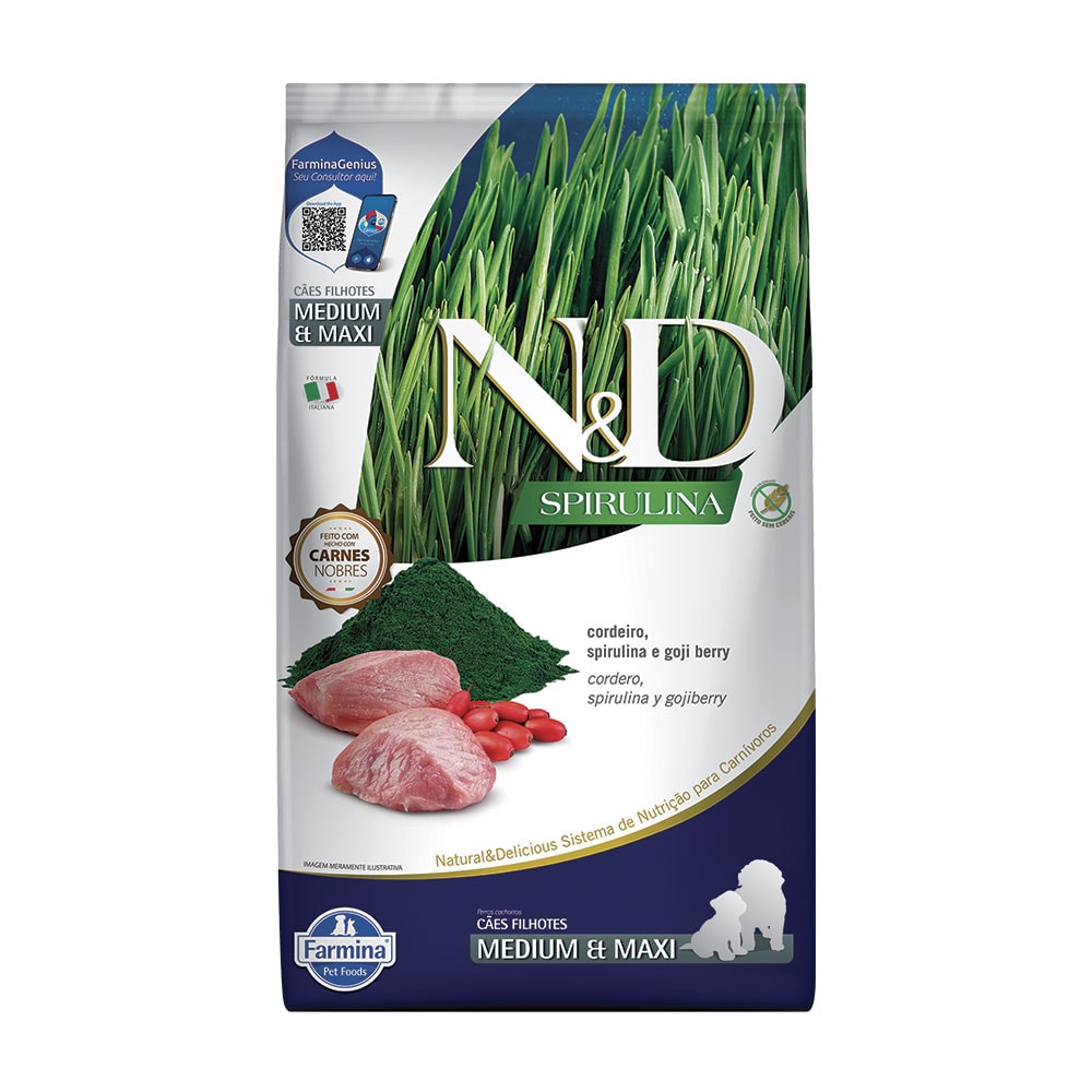 Ração Farmina N&D Spirulina Para Cães Filhotes de Porte Médio e Grande Sabor Cordeiro