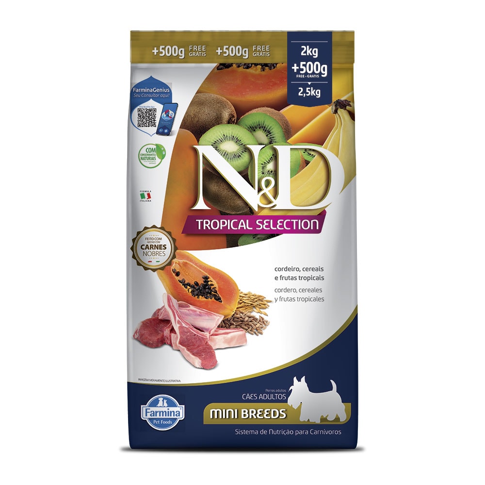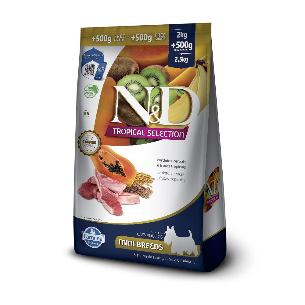 Ração Farmina N&D Tropical Selection Cães Adultos Porte Mini e Pequeno Cordeiro, Cereais e Frutas Tropicais