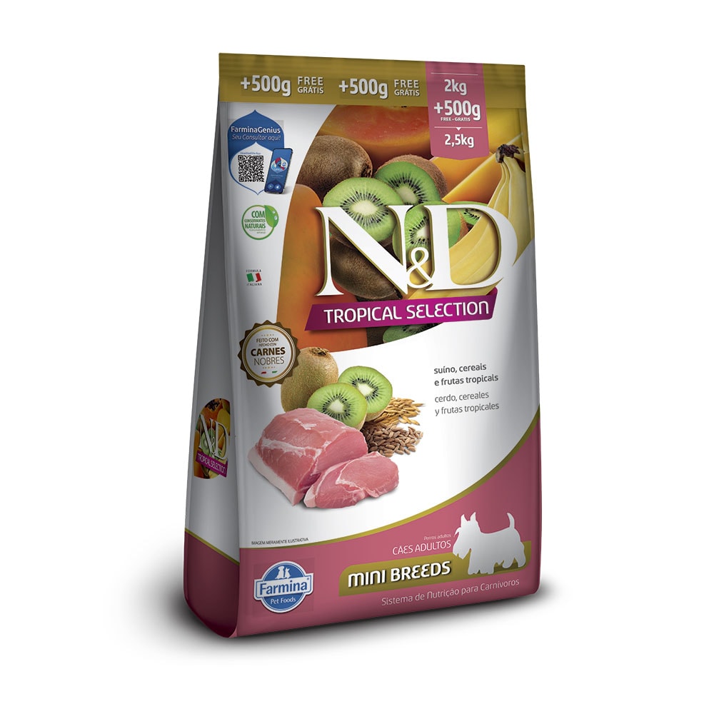 Ração Farmina N&D Tropical Selection Cães Adultos Porte Mini Sabor Suíno, Cereais e Frutas Tropicais