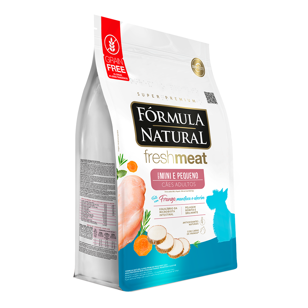 A Ração Fórmula Natural Fresh Meat Cães Adultos Porte Mini e Pequeno, sabor frango, mandioca e alecrim, é a nutrição certa em níveis adequados, com os nutrientes que promover mais saúde e bem-estar aos cães. Confira mais detalhes do fabricante: