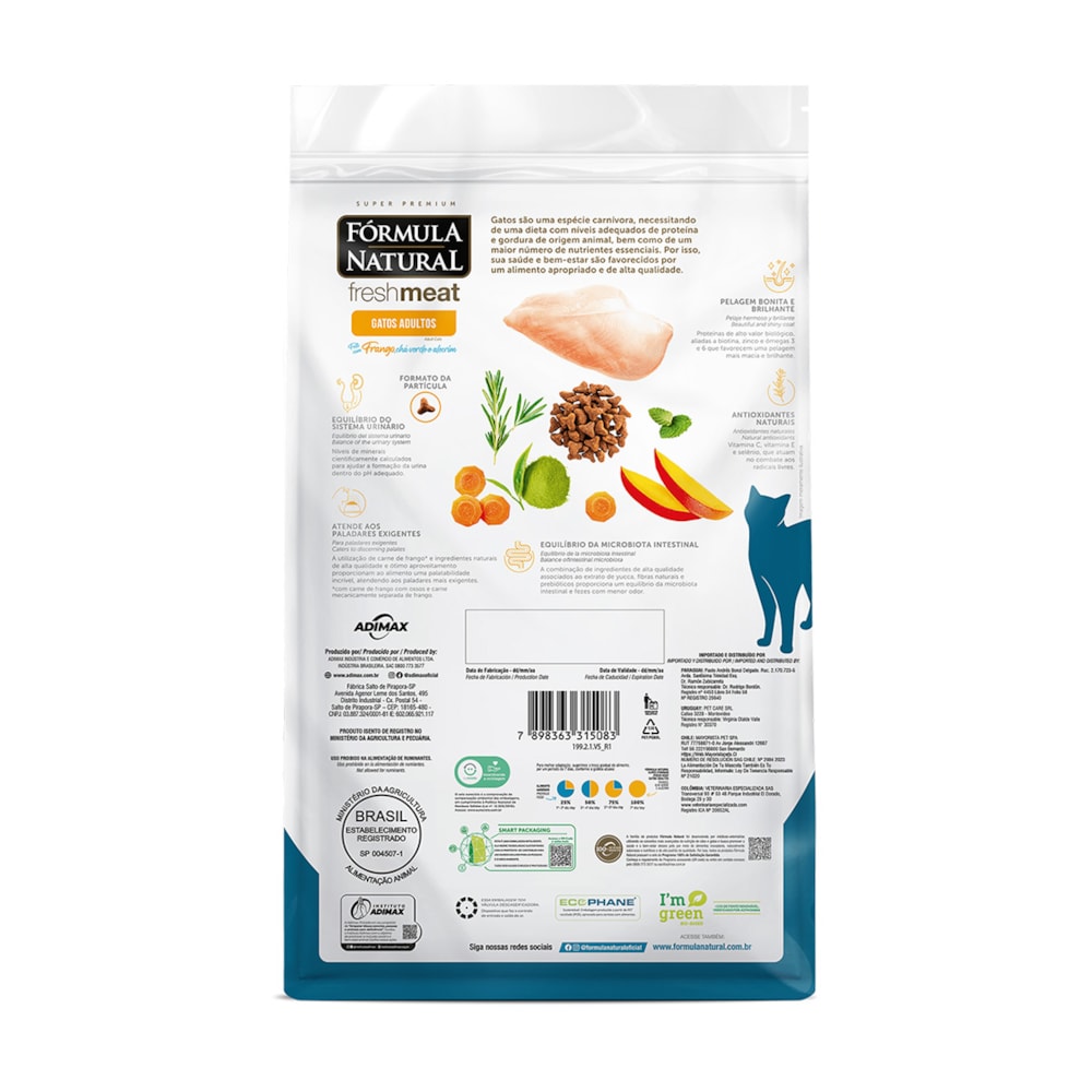 A Ração Fórmula Natural Fresh Meat Gatos Adultos Frango, Chá Verde e Alecrim 10,1 kg foi desenvolvida para atender às necessidades nutricionais de gatos adultos que exigem uma alimentação rica, equilibrada e com ingredientes de alta qualidade. Sua fórmula combina carnes frescas de frango, antioxidantes naturais e elementos funcionais que favorecem a saúde geral, oferecendo uma nutrição completa e sabor que agrada até os paladares mais exigentes.