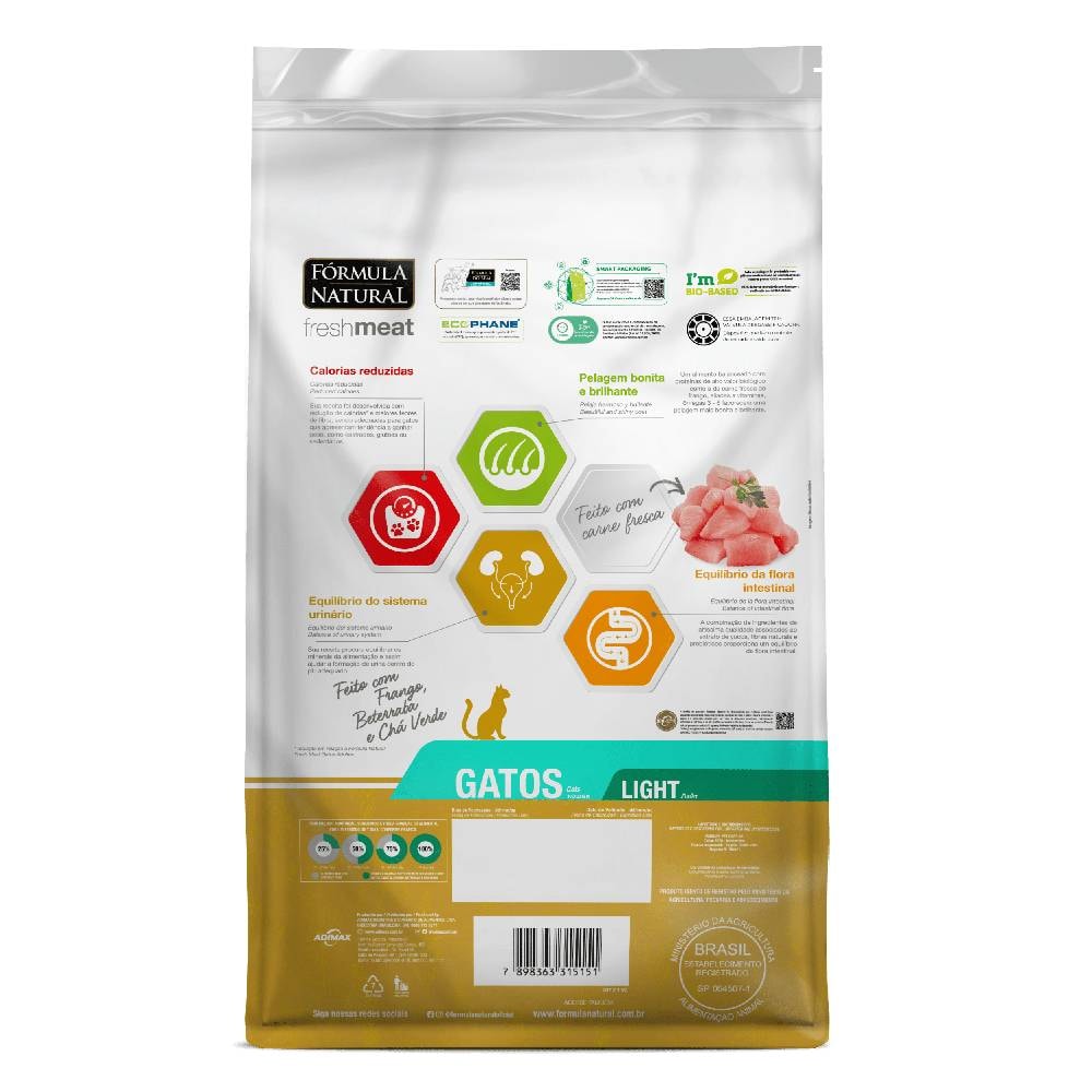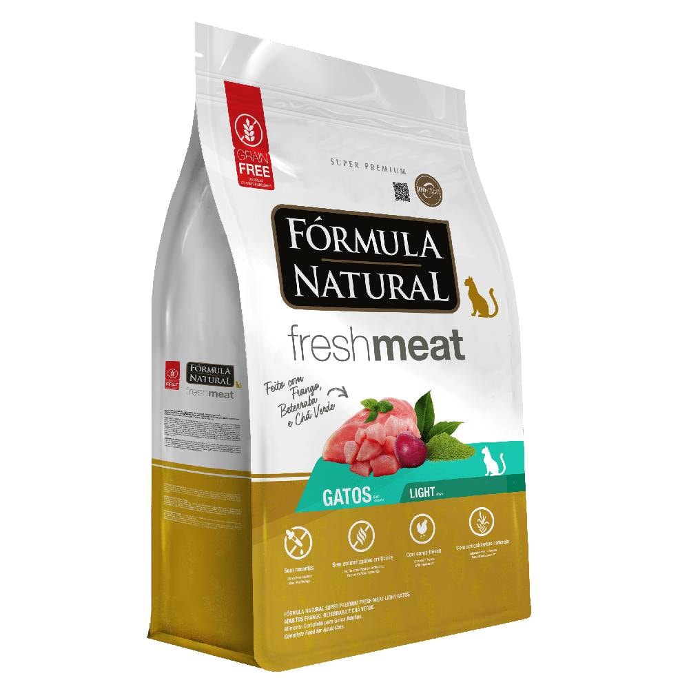 Detalhes do Produto Desenvolvida por médicos veterinários, a linha Fórmula Natural Fresh Meat utiliza os conceitos mais avançados da nutrição de cães e gatos. Naturalmente saborosa e nutritiva, possui como grande diferencial a utilização de carne fresca e fontes especiais de carboidratos, fibras, vitaminas e minerais, como as frutas e vegetais. É uma linha completa que oferece versões com cuidados específicos para diferentes necessidades e estágios de vida. Fórmula Natural Fresh Meat Gatos Light oferece um teor menor de calorias e mais fibras para gatos adultos com tendência a engordar, glutões ou sedentários.