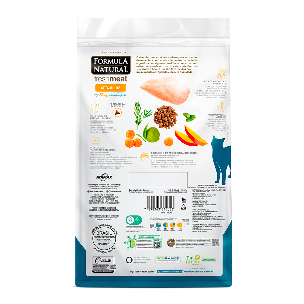 A Ração Fórmula Natural Fresh Meat para Gatos Adultos Sabor Frango 1kg foi desenvolvida com os níveis adequados de preoteína e gordura de origem animal, o que é essencial para os felinos. Além disso, é composta de nutrientes que favorecem a saúde e promovem uma alimentação de qualidade. Confira a seguir os detalhes do produto fornecidos pelo fabricante: