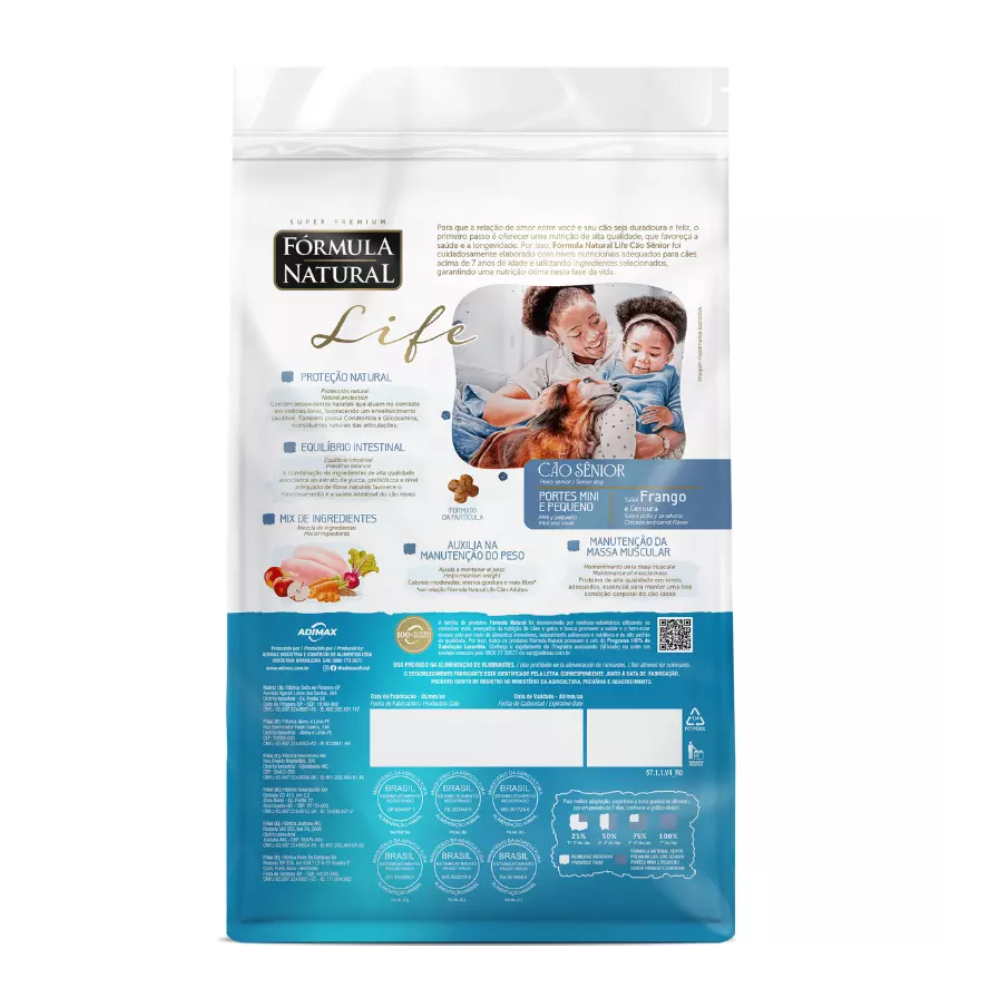 Fórmula Natural Life Cão Sênior Mini e Pequeno é um alimento completo, natural e balanceado, desenvolvido especialmente para cães com mais de 7 anos. Elaborado com ingredientes nobres e sem transgênicos, oferece suporte nutricional adequado para a manutenção da saúde e longevidade nesta fase da vida.