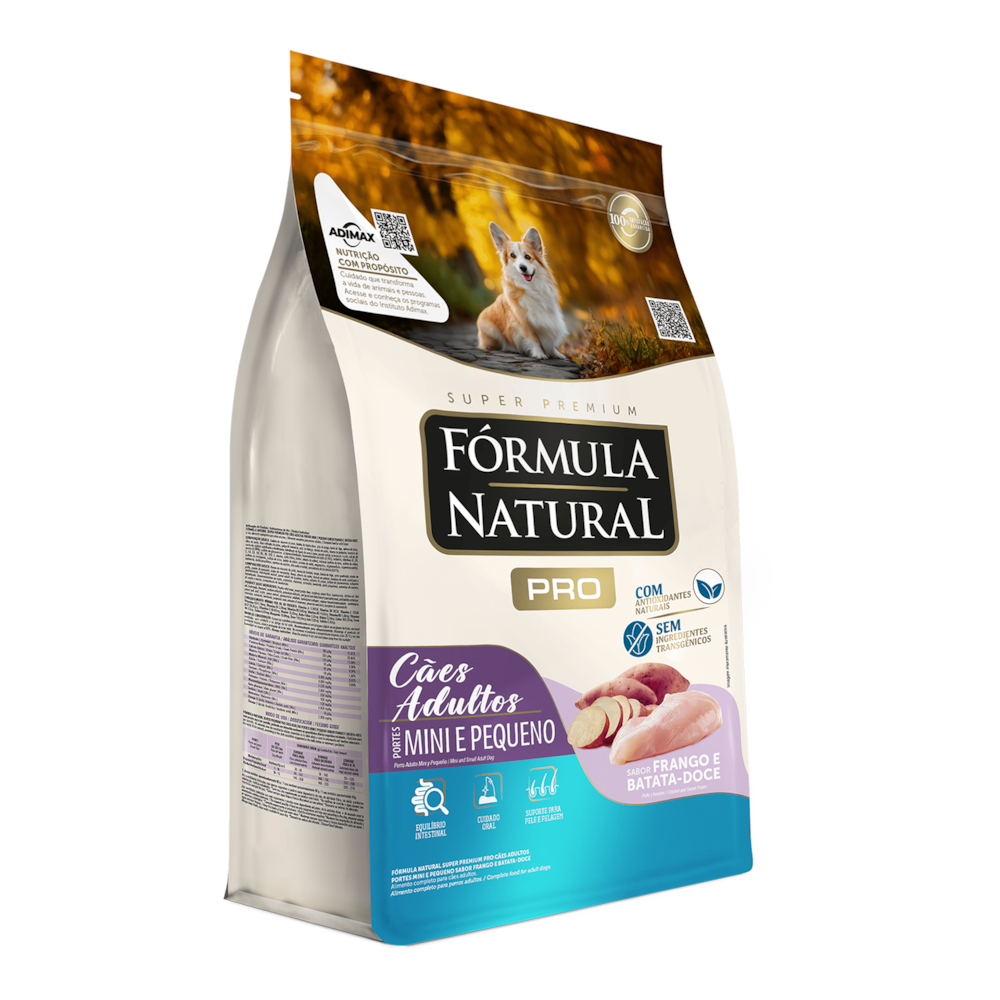 Descrição do produto: A Ração Fórmula Natural Super Premium Pró Cães Adultos Portes Mini e Pequeno Sabor Frango e Arroz Integral auxilia na saúde intestinal, contribui para uma pelagem bonita e saudável, além de promover cuidado com a saúde oral e das articulações. Formulada com ingredientes naturais, não contém corantes e aromatizantes artificiais, oferece também todos os cuidados para promover saúde, longevidade e qualidade de vida aos cães adultos. Veja mais detalhes do fabricante: