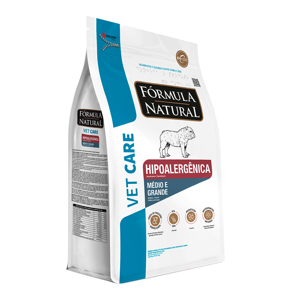 Descrição do produto: A Ração Fórmula Natural Vet Care Hipoalergênica Cães Portes Médio e Grande é um alimento coadjuvante indicado para auxiliar o tratamento das reações adversas ao alimento, como a hipersensibilidade e a intolerância alimentar a determinados ingredientes. Confira mais detalhes do fabricante: