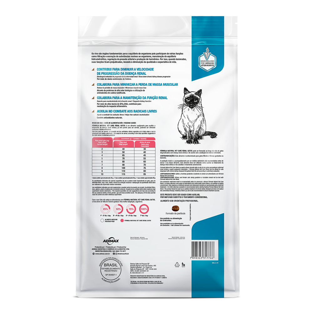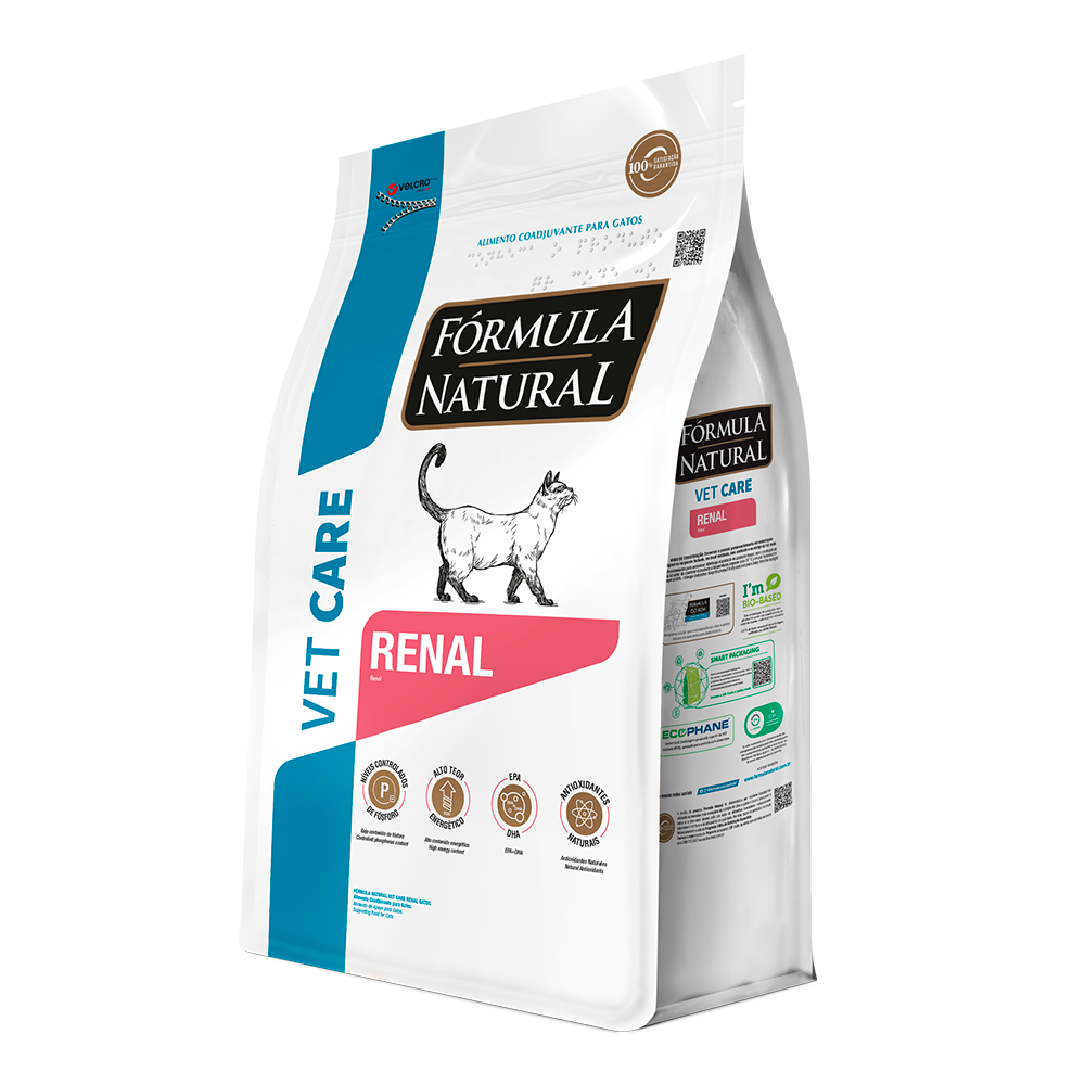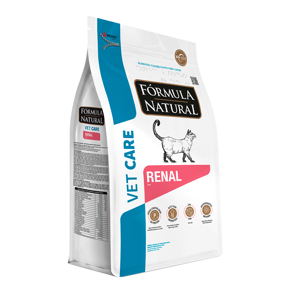 Descrição do produto: A Ração Fórmula Natural Vet Care Renal para Gatos é um alimento coadjuvante que tem por objetivo colaborar na diminuição da progressão da Doença Renal Crônica e melhorar a qualidade de vida dos felinos com essa condição.