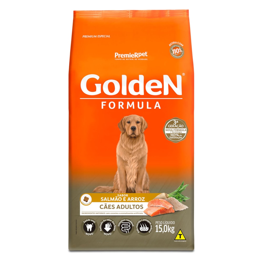 A Ração Golden Fórmula para Cães Adultos sabor Salmão e Arroz