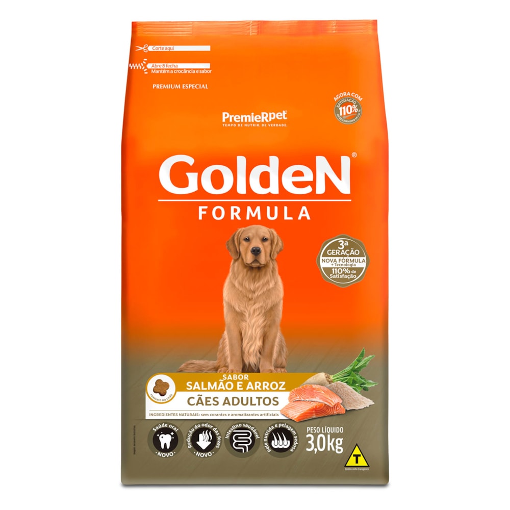 A Ração Golden Fórmula para Cães Adultos sabor Salmão e Arroz