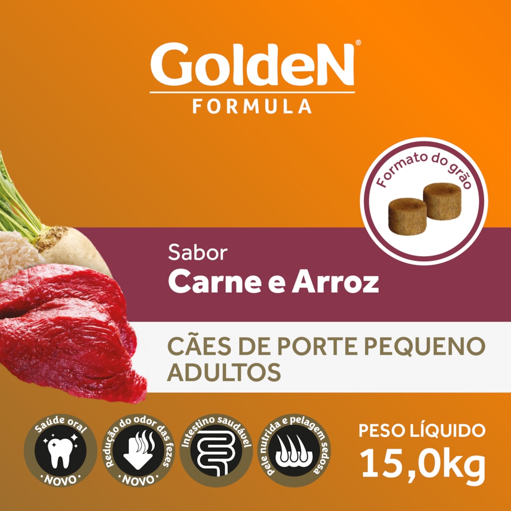 Ração Golden Fórmula Mini Bits Cães Adultos Raças Pequenas Carne e Arroz 15,0 kg