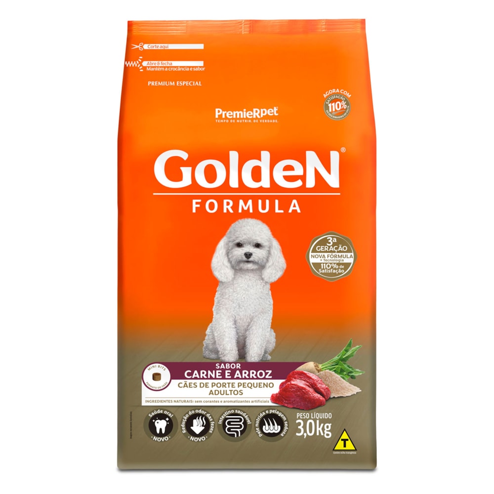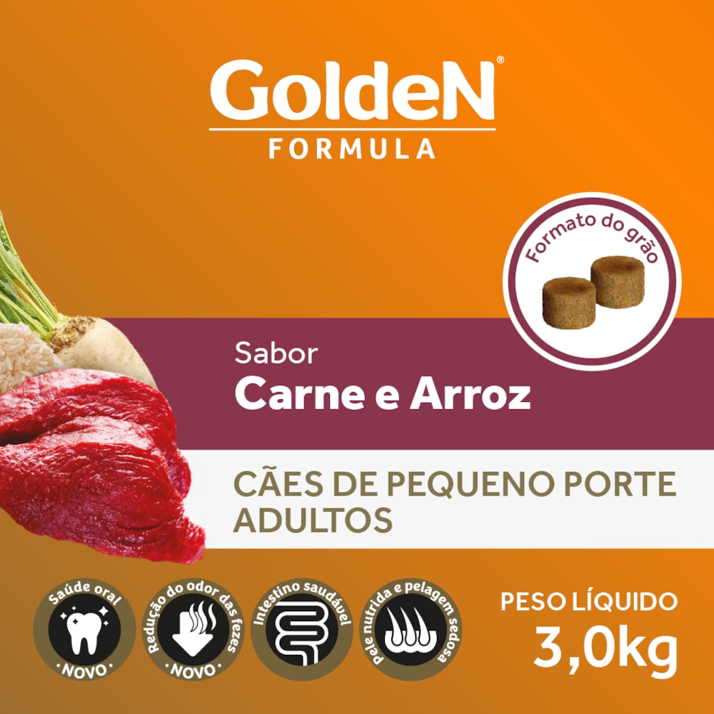 A Ração Golden Fórmula Adultos Carne & Arroz Mini Bits é um alimento Premium Especial desenvolvido para cães adultos de pequeno porte. Os cães são essencialmente carnívoros e digerem muito melhor os alimentos de origem animal. Apresenta grãos adequados para animais de pequeno porte, facilitando a mastigação. A Golden Fórmula Adultos Carne & Arroz Mini Bits é um produto completo e visa, acima de tudo, proporcionar aos cães, o nível ideal de todos os nutrientes que eles necessitam para uma vida longa e saudável.