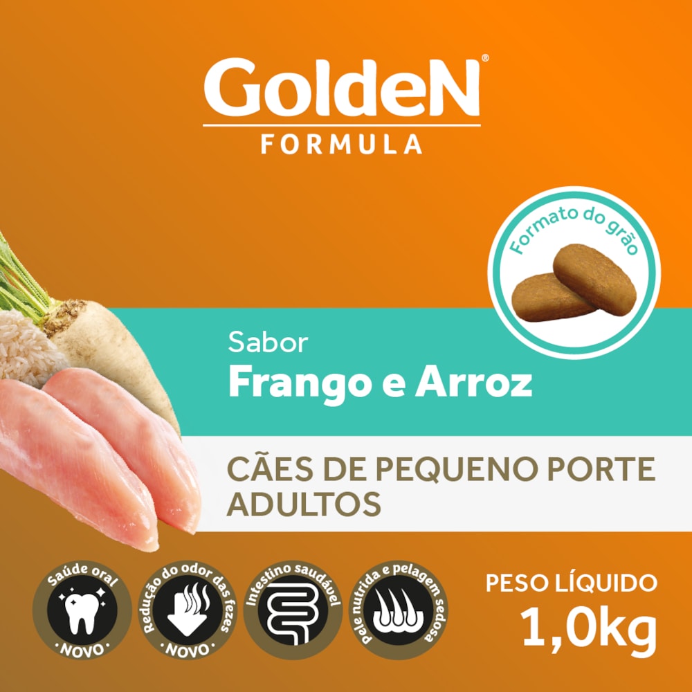 A Ração Golden Fórmula Adultos Frango & Arroz Mini Bits é um alimento Premium Especial desenvolvido para cães adultos de pequeno porte.