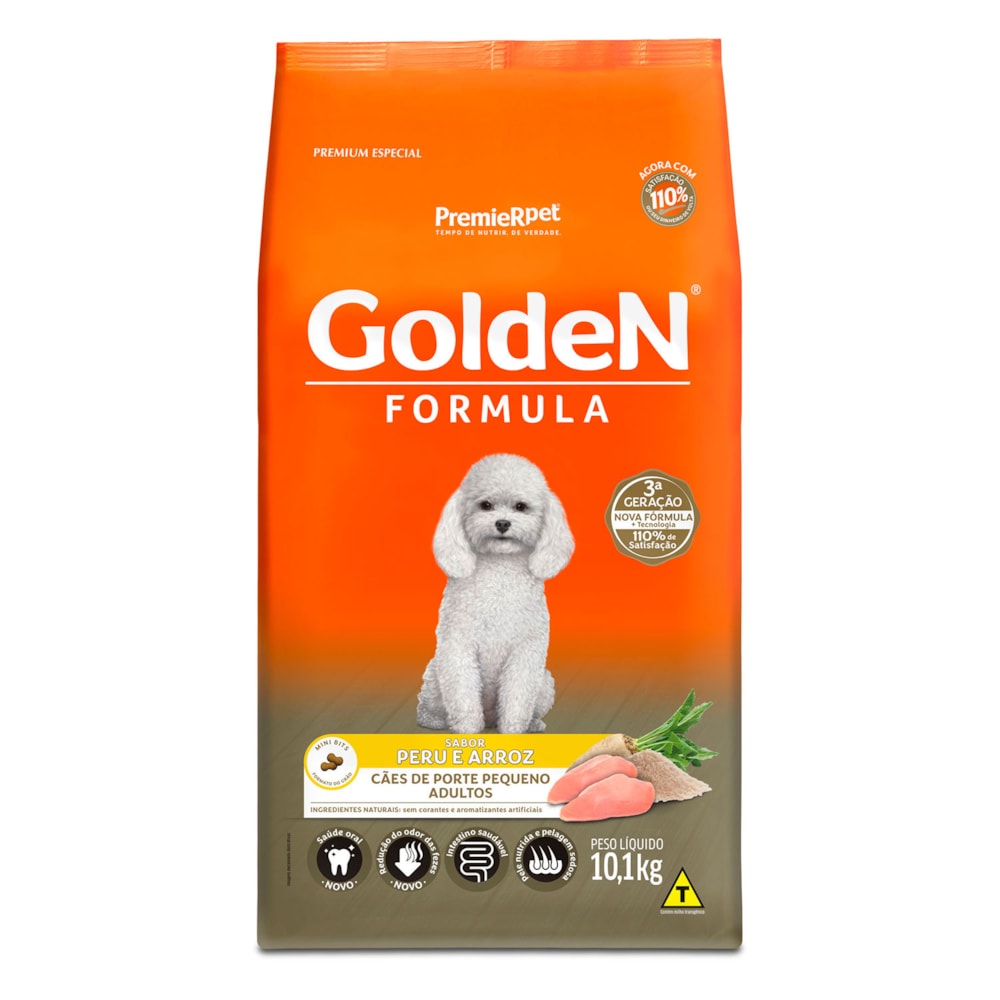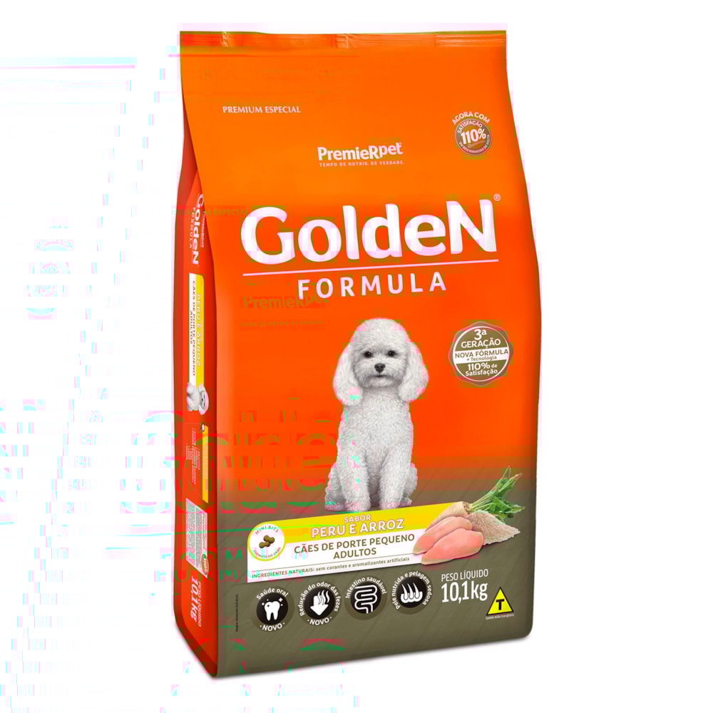Ração Golden Fórmula Mini Bits Cães Adultos Raças Pequenas Peru e Arroz 10,1 kg