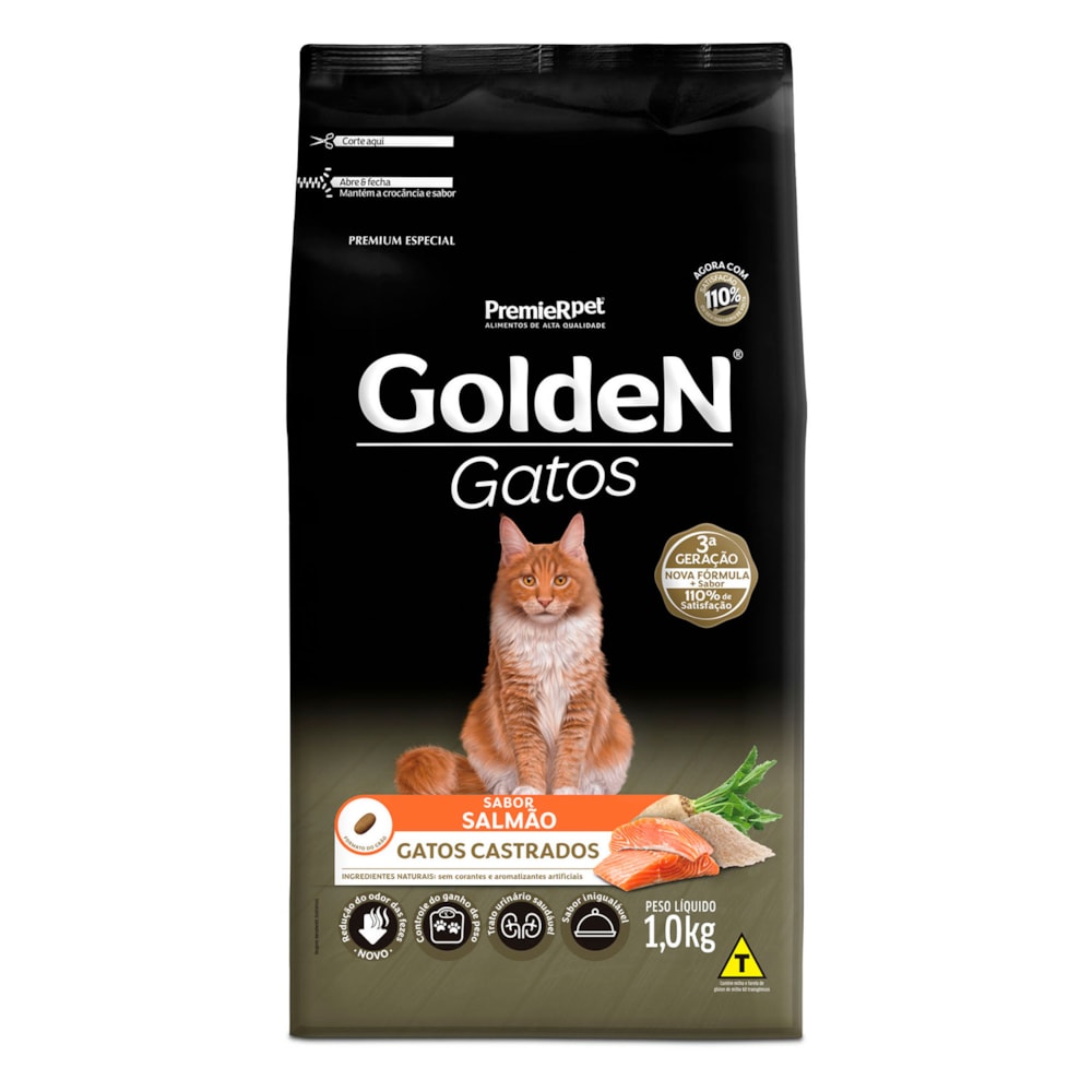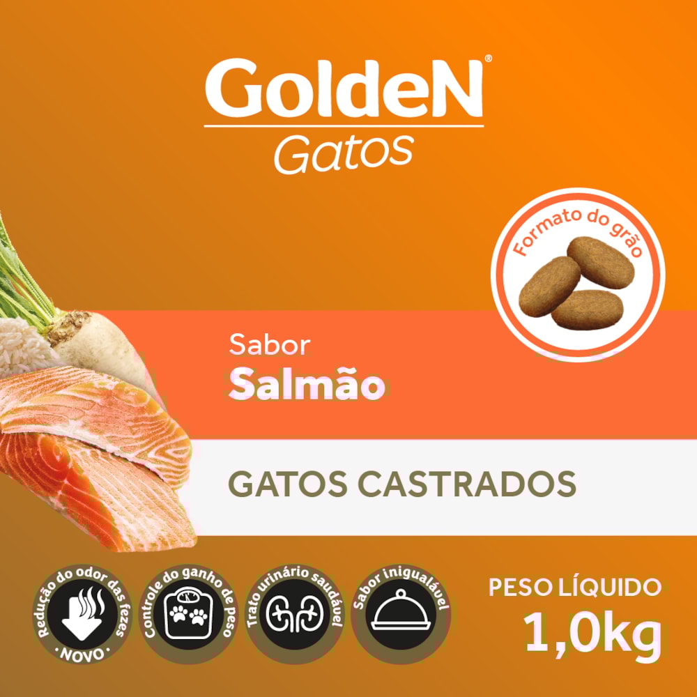 Ração Golden Gatos Adultos Castrados Salmão 1,0 kg
