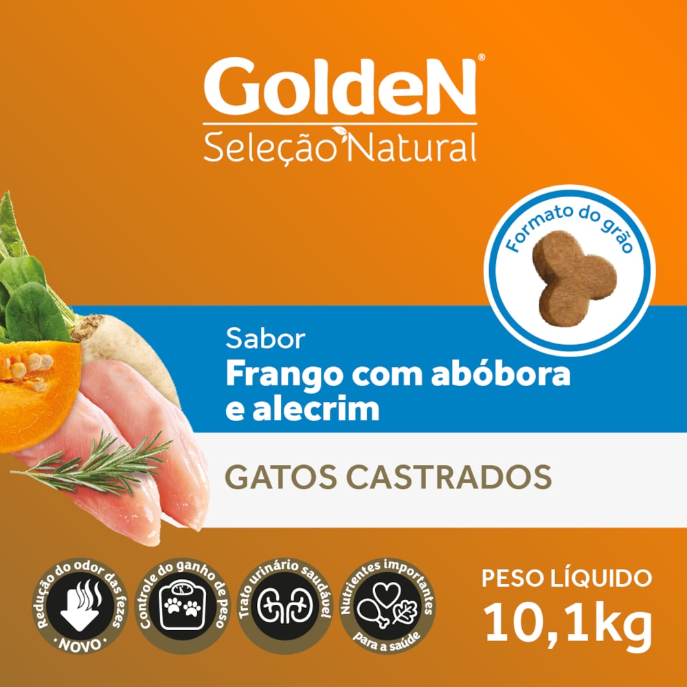 Ração Golden Seleção Natural Gatos Castrados Frango com Abóbora 10,1 kg