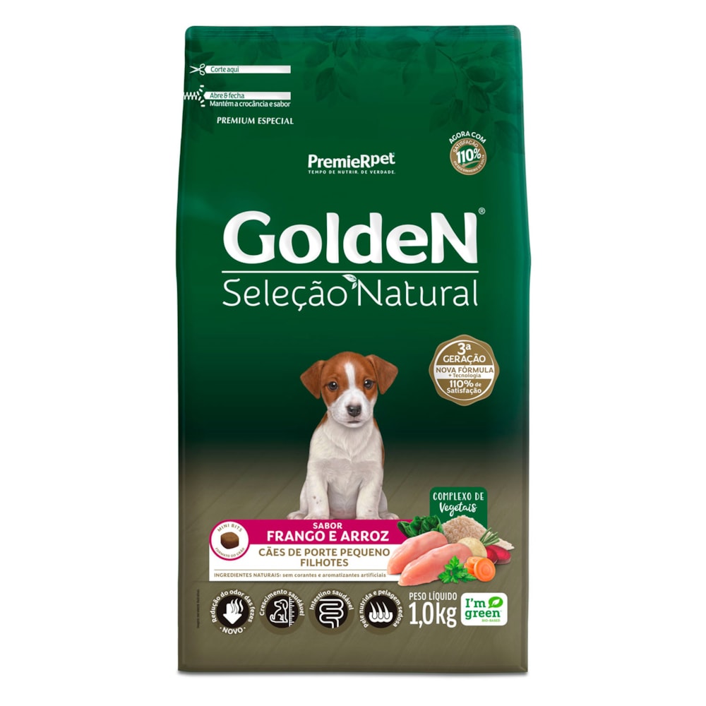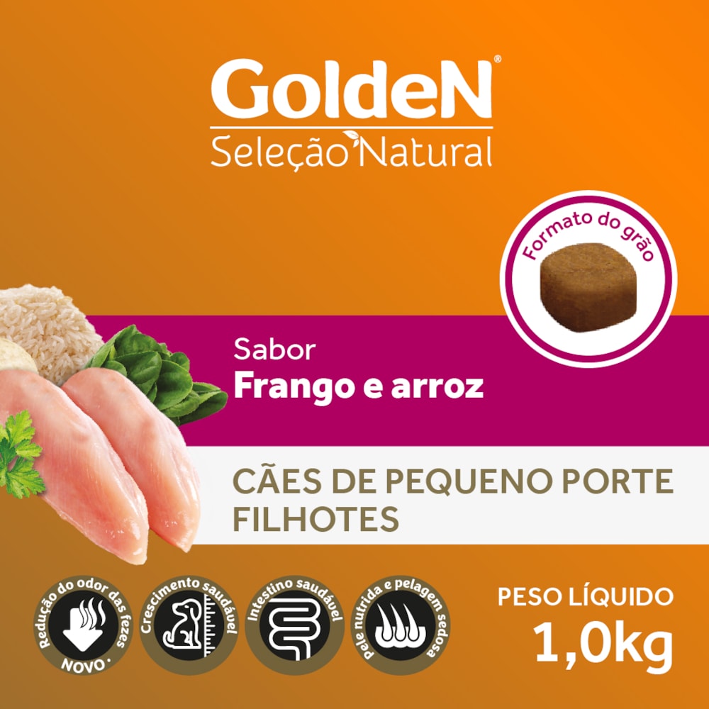A Ração Golden Seleção Natural Mini Bits para Cães Filhotes Raças Pequenas sabor Frango e Arroz é um alimento completo desenvolvido com todas as vitaminas, nutrientes e substâncias que o seu cão precisa para viver de forma mais saudável e com uma pelagem sempre bonita! Com 27% de proteína, é indicado para cães filhotes de pequeno porte desde o desmame até a idade adulta. Sua fórmula contém Ômegas 3 e 6 e Zinco que ajudam a manter a pele protegida e reduz a queda de pelos e ainda possui DHA que estimula a capacidade de aprendizagem. As proteínas da Ração Golden Seleção Natural Mini Bits para Cães Filhotes Raças Pequenas sabor Frango e Arroz são de altíssima qualidade resultando em alta palatabilidade e os níveis de calorias e gorduras são reduzidos. Sua composição também é enriquecida de Vitamina A, C, E, B12, K3 e D3 além do Complexo 6 vegetais que facilitam a absorção e equilibram a demanda nutricional do seu cão, proporcionando mais vigor para as atividades do dia a dia.