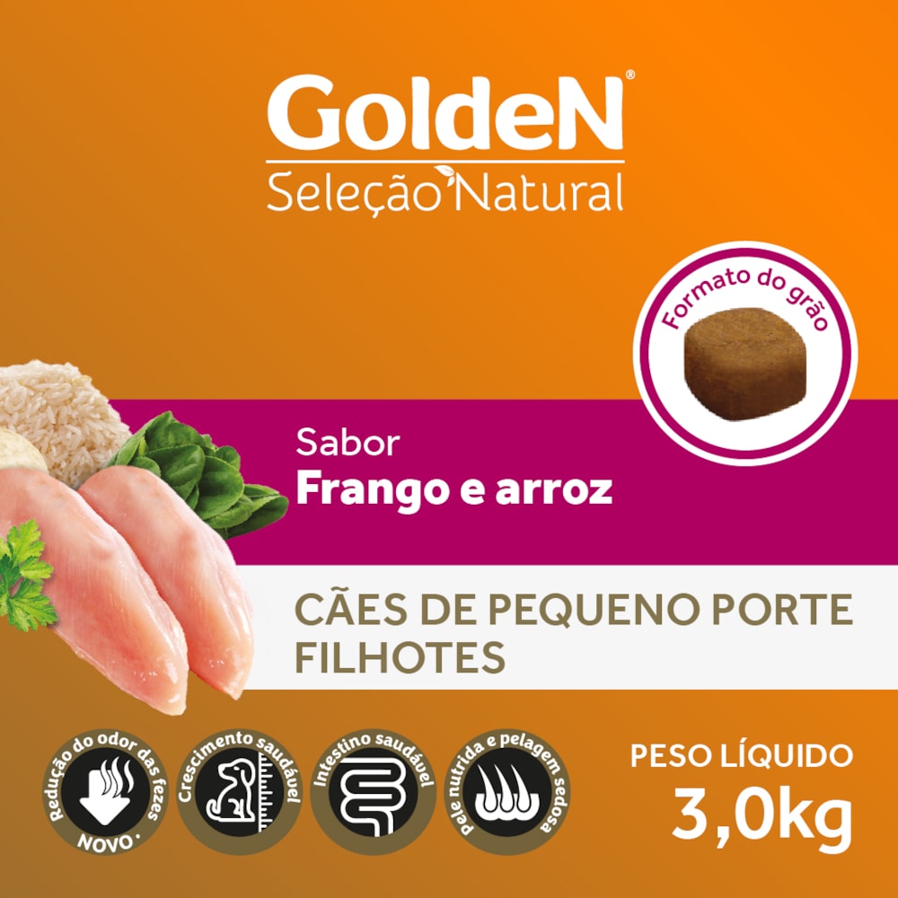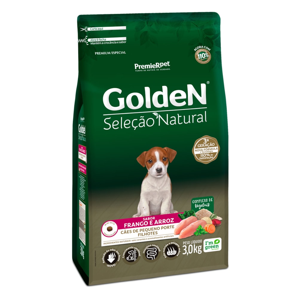 Ração Golden Seleção Natural Mini Bits Cães Filhotes Raças Pequenas Frango e Arroz 3,0 kg
