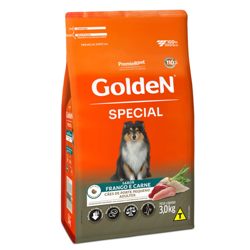 Análise NutricionalDê ao seu cão adulto de porte pequeno o presente de uma vida mais saudável, feliz e saborosa com a Ração Golden Special Cães Adultos Porte Pequeno!