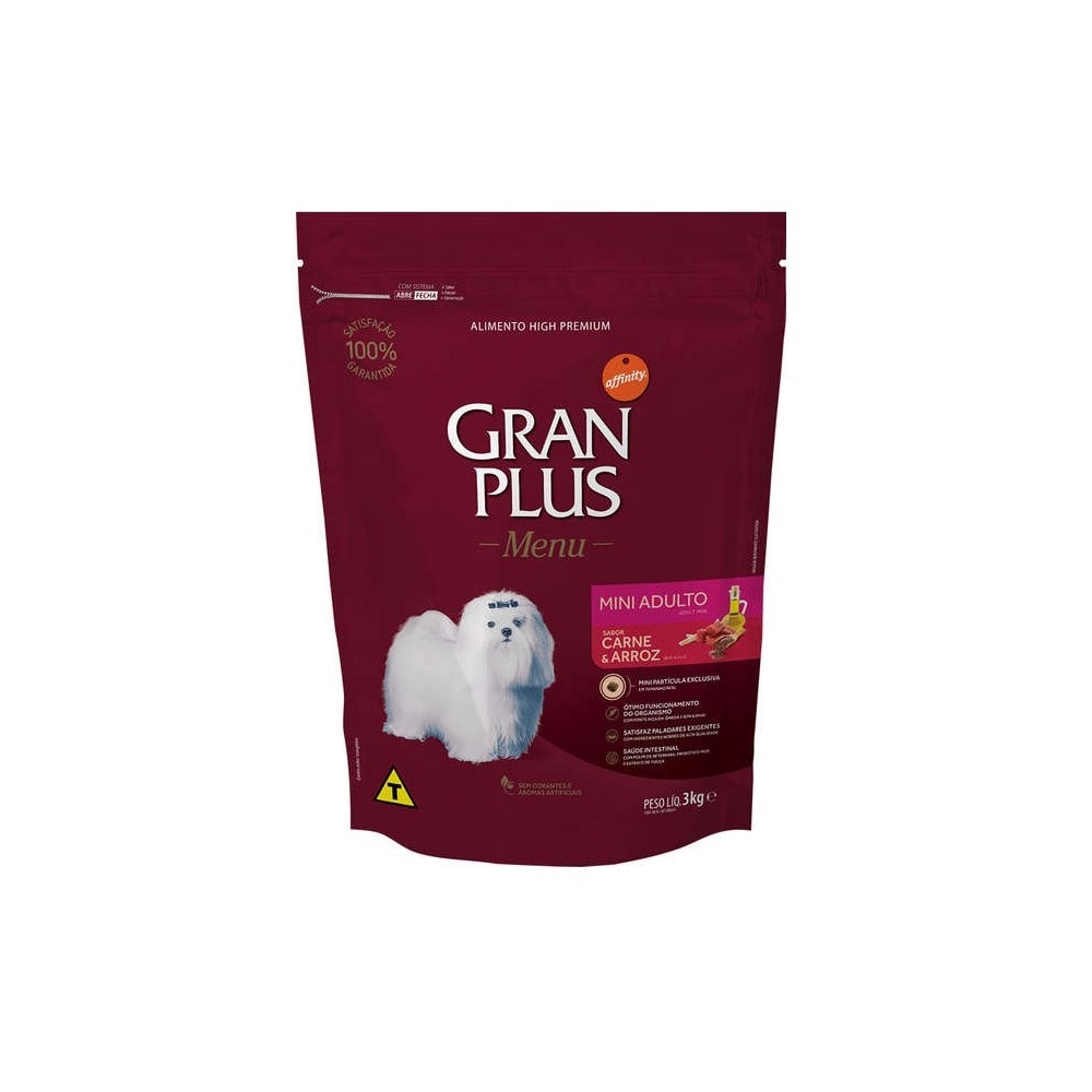 Ração Gran Plus Menu Cães Adultos Raças Mini Carne e Arroz 3,0 kg