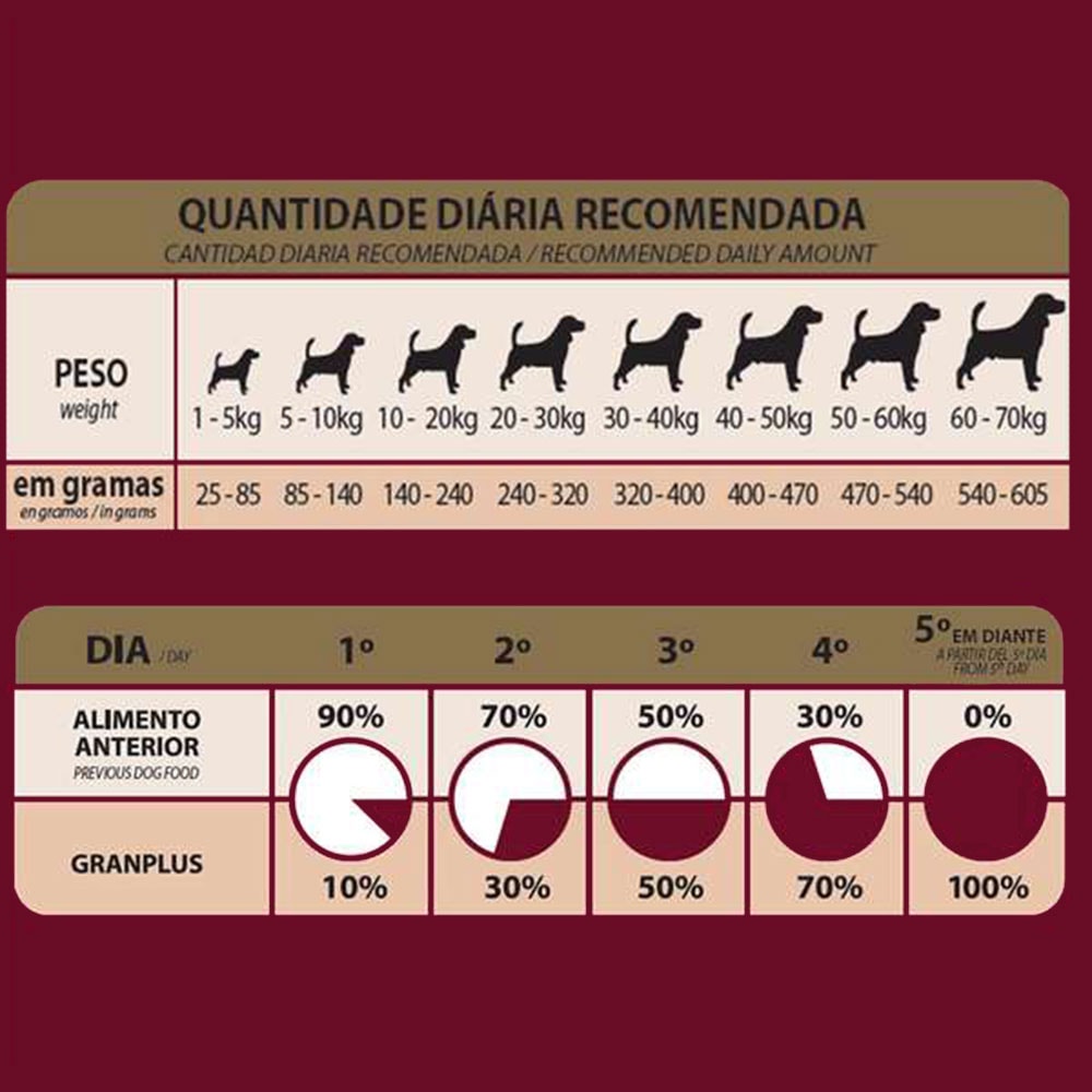 A Ração Gran Plus Menu para Cães Adultos Raças Médias e Grandes Sabor Frango e Arroz contribui para o ótimo funcionamento do organismo com fonte rica em ômega 3 (EPA e D). Além disso, as articulações são fortalecidas com glicosamina e condrotina e também ajuda no equilíbrio intestinal com a polpa de beterraba e prebiótico em sua composição. Outro detalhe é que esse produto não possui corantes e nem aromas artificiais.