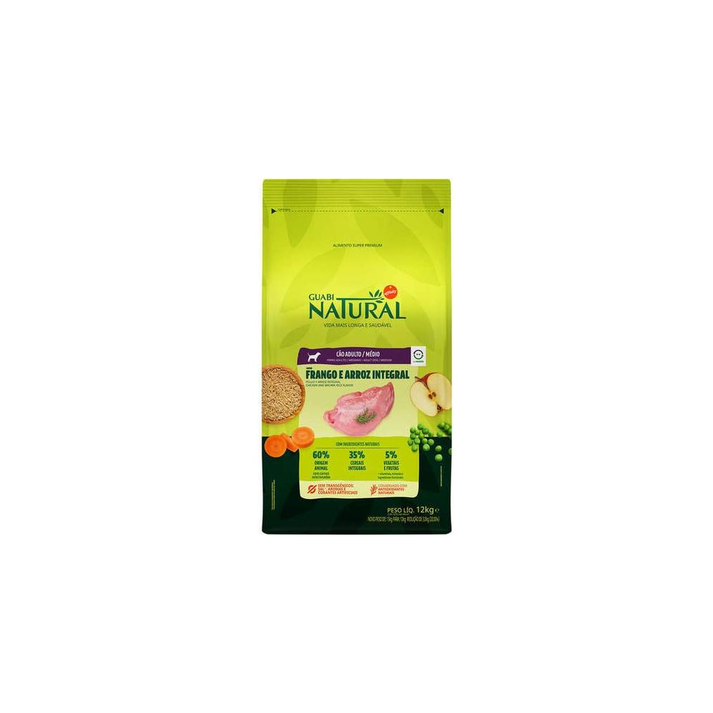A Ração Guabi Natural Frango e Arroz Integral para Cães Adultos Raças Média, é um alimento Super Premium feito com carnes selecionadas e ingredientes essenciais, sem transgênicos, corantes, sal e aromas artificiais. Além disso, foi desenvolvido por especialistas em nutrição e aprovado por veterinários para fornecer toda qualidade e saúde que seu cão precisa.