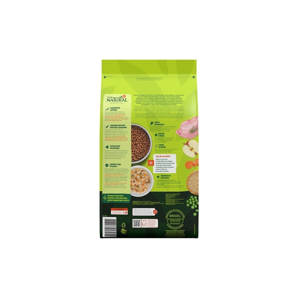 Guabi Natural é uma linha de Alimentos Super Premium desenvolvida para garantir uma alimentação variada, trazendo o equilíbrio ideal entre os grupos de ingredientes para que os pets tenham uma vida mais longa e saudável. É livre de transgênicos, corantes e aromas artificiais.