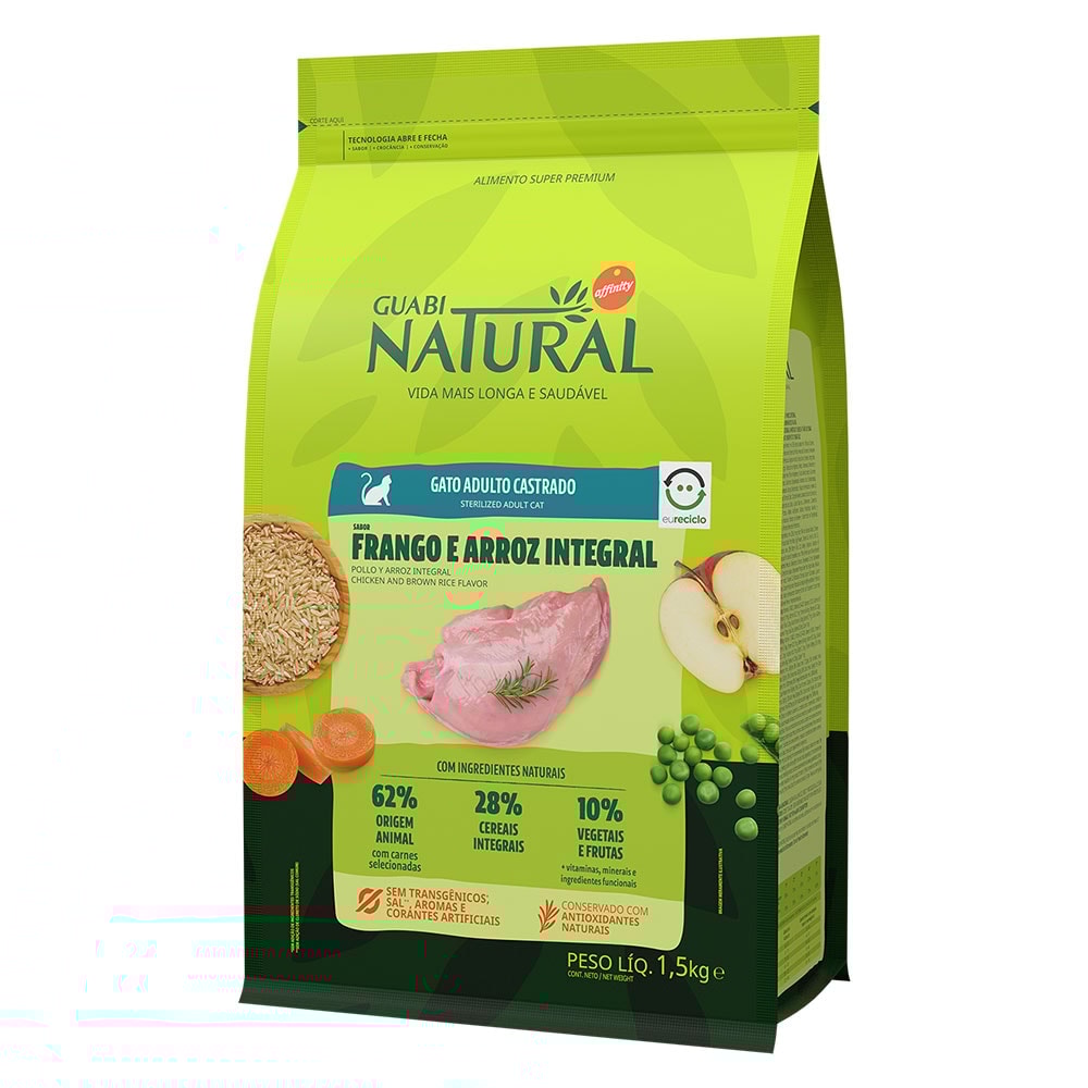 Guabi Natural é uma linha de Alimentos Super Premium desenvolvida para garantir uma alimentação variada, trazendo o equilíbrio ideal entre os grupos de ingredientes para que os pets tenham uma vida mais longa e saudável. É livre de transgênicos, corantes e aromas artificiais.