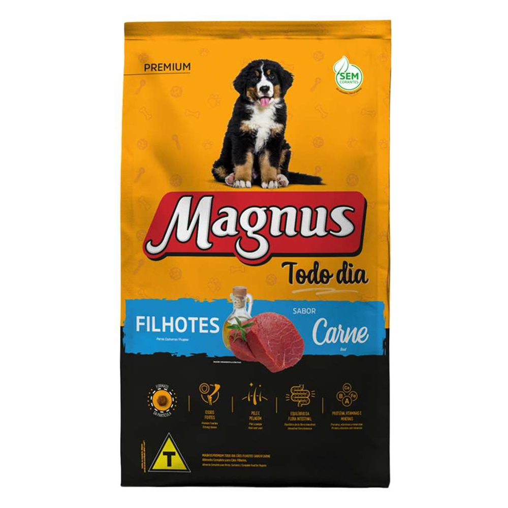 Com um sabor irresistível de carne que os filhotes adoram, a Ração Magnus Todo Dia garante: