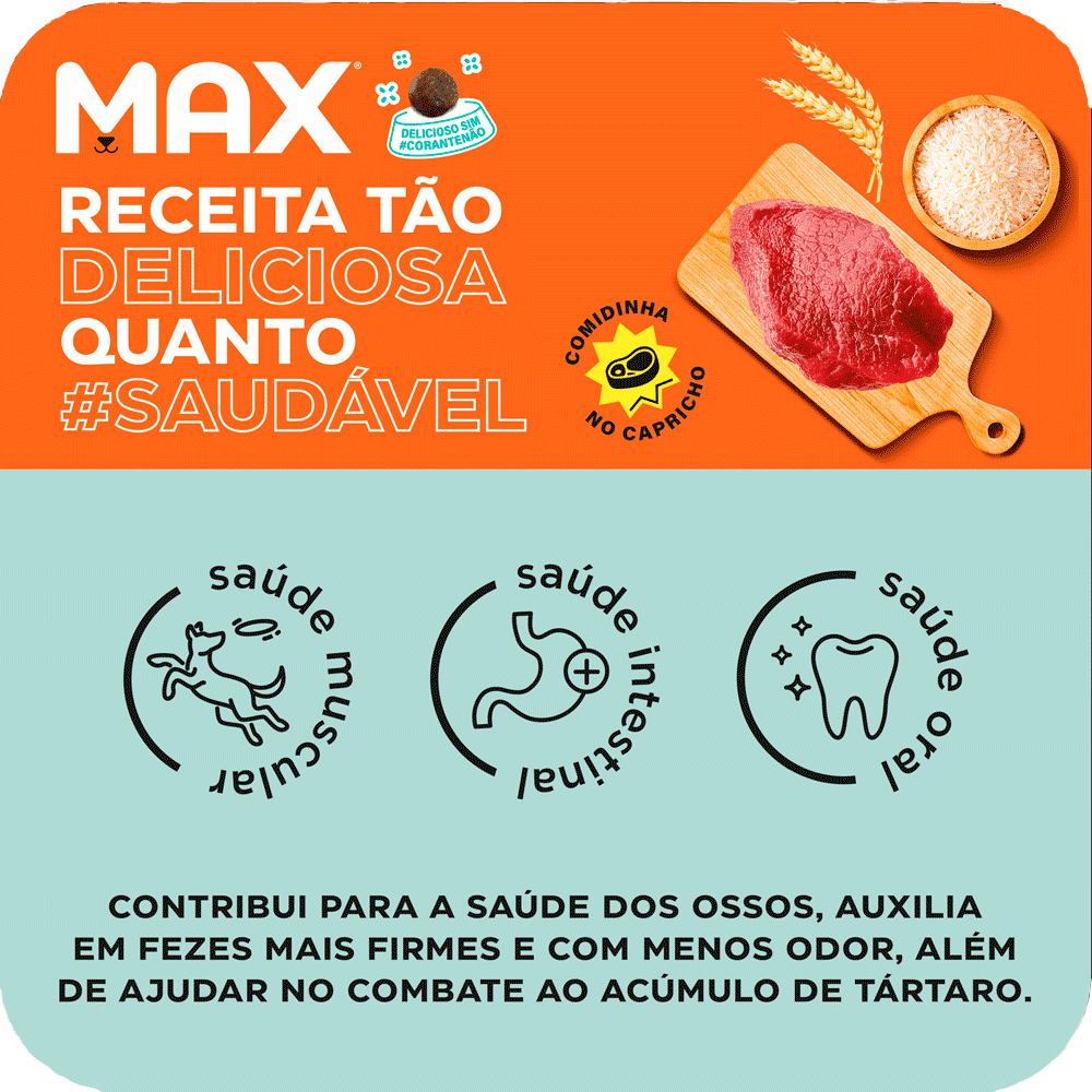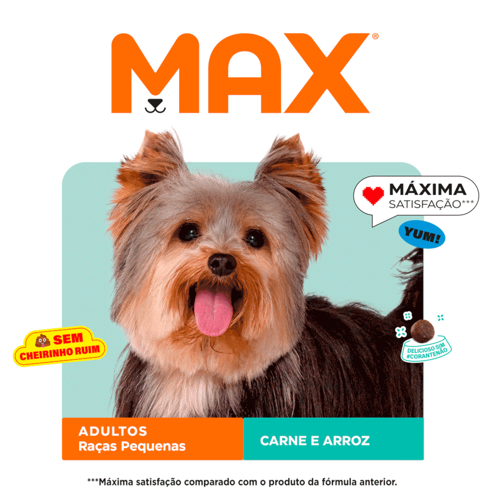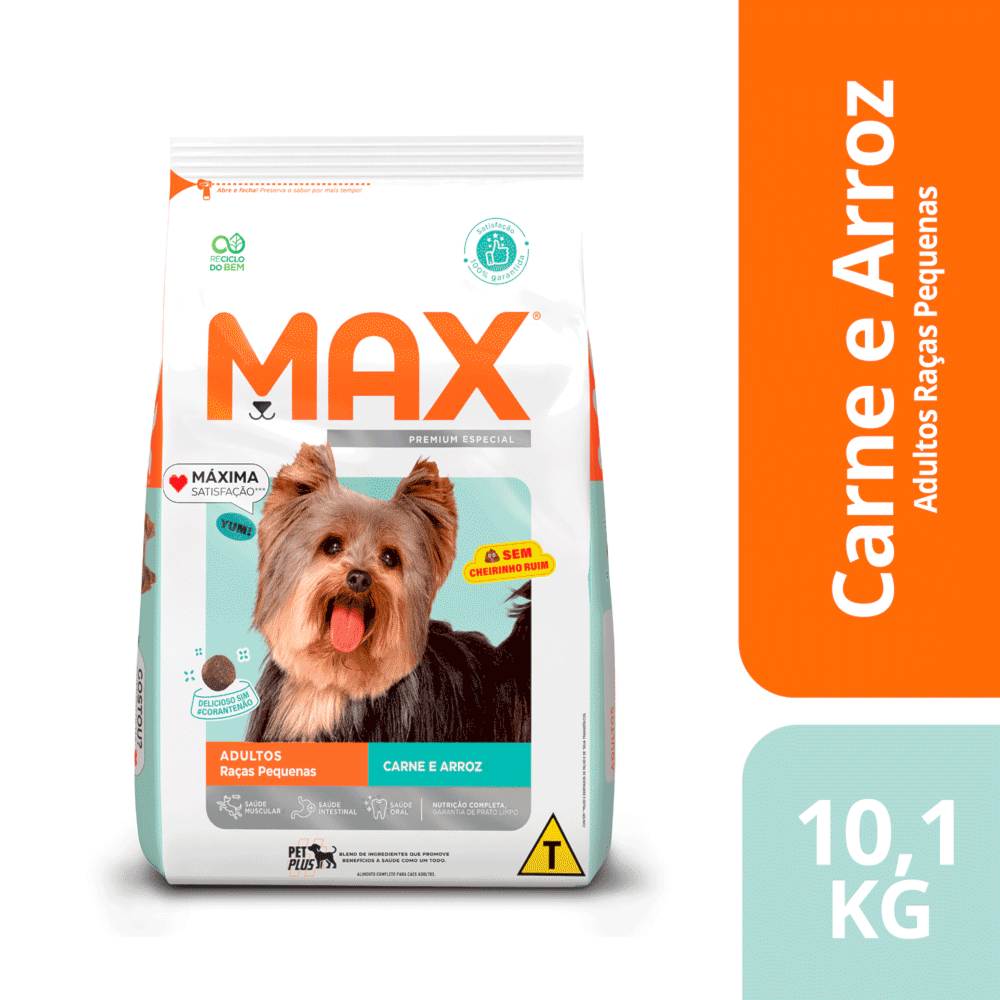 Dê ao seu cãozinho o melhor que ele merece com a Ração Max para Cães Adultos Raças Pequenas Sabor Carne e Arroz!