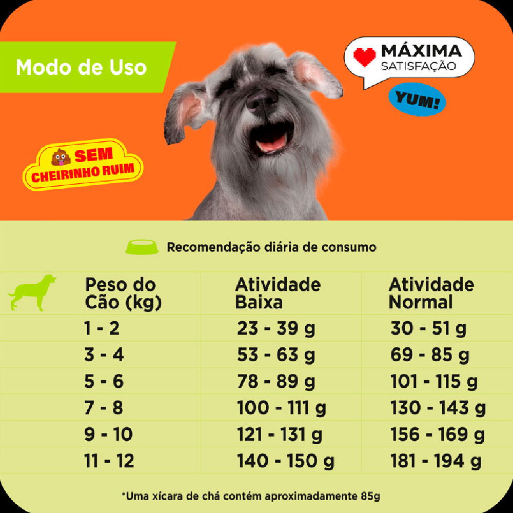 Farinha de carne e ossos de bovino, farinha de vísceras de aves, óleo de aves, óleo de peixes, grão de milho**, gérmen de milho desengordurado**, farelo de glúten de milho**, DDGS - resíduo seco de destilaria com solúveis (milho)**, grão de sorgo, quirera de arroz, farelo de trigo, polpa desidratada de beterraba, biomassa de microalgas (Schizochytrium sp.), grão de linhaça, farelo de soja*, cloreto de sódio, cloreto de potássio, sulfato de condroitina (0,005%), sulfato de glicosamina (0,05%), cloreto de colina, ácido propiônico, aditivo prebiótico (0,024%), extrato de yucca (0,025%), BHA (Butilhidroxianisol), BHT (Butilhidroxitolueno), hidrolisado de carne de aves e fígado de aves, vitamina A, vitamina B1, vitamina B12, vitamina B2, vitamina B6, vitamina B9, vitamina B5, vitamina D3, vitamina H, vitamina K3, vitamina B3, vitamina E, sulfato de ferro, sulfato de cobre, monóxido de manganês, óxido de zinco, selenito de sódio, iodato de cálcio. Eventuais Substitutos: Hidrolisado de fígado de aves, hidrolisado de fígado de aves e suíno, ácido acético, propionato de amônio.