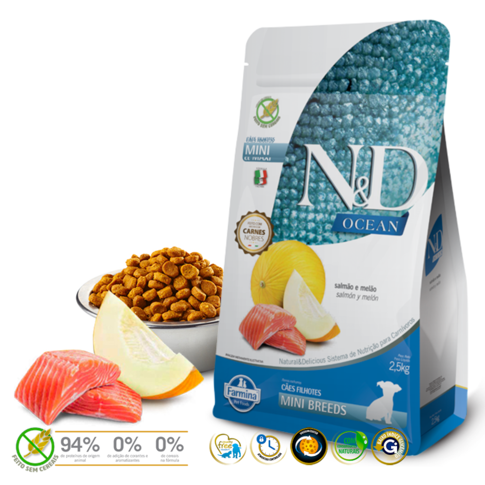 Ração N&D Ocean Cães Filhotes Porte Mini Salmão e Melão