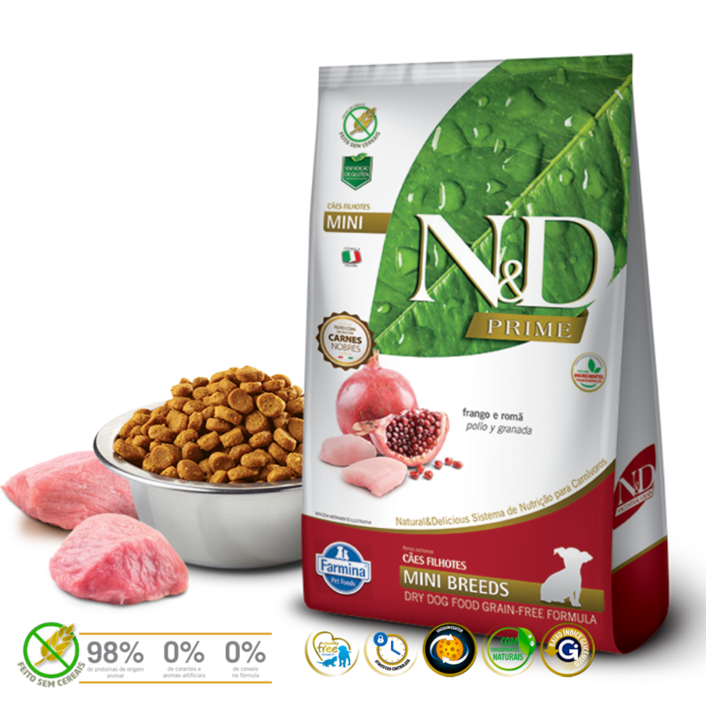 Ração N&D Prime Cães Filhotes Raças Pequenas Frango e Romã