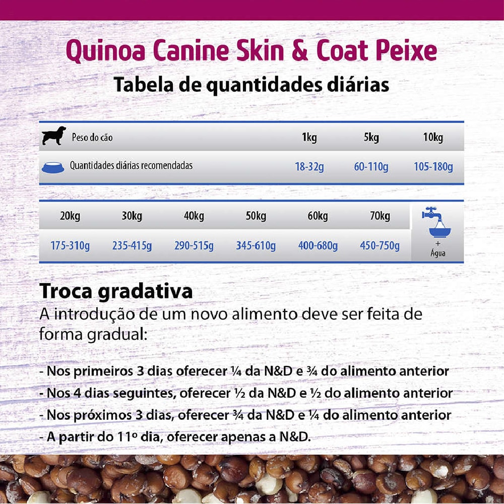 Além dos níveis de garantia, a N&D Quinoa Skin & Coat Peixe 2,5KG também é enriquecida com: