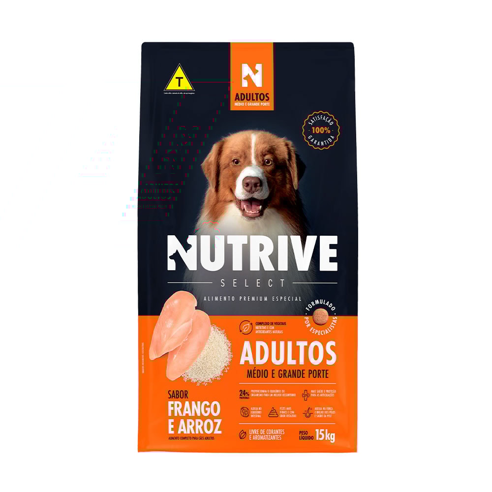 Alimento completo indicado para cães adultos de médio porte (a partir de 12 meses) e grande porte (a partir de 18 meses).