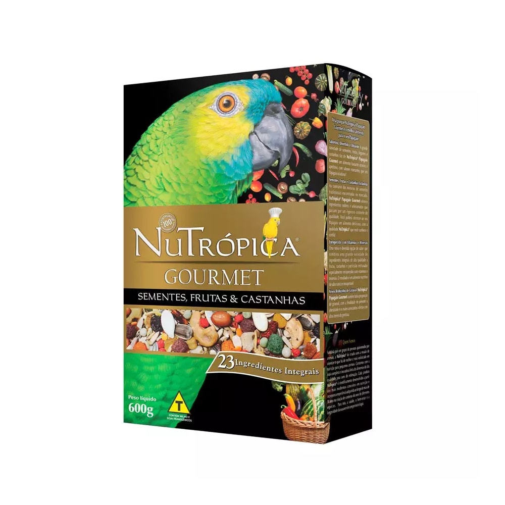 NuTrópica® Papagaio Gourmet deve estar sempre à disposição de sua ave. Frutas, verduras e legumes frescos podem ser oferecidos, desde que não ultrapassem 20% do peso total do alimento diário. Água limpa e fresca deve estar sempre disponível. Para garantir um melhor aporte nutricional à sua ave, recomendamos o fornecimento de alimentos extrusados NuTrópica® especialmente formulados para Papagaios, de duas a três vezes por semana.