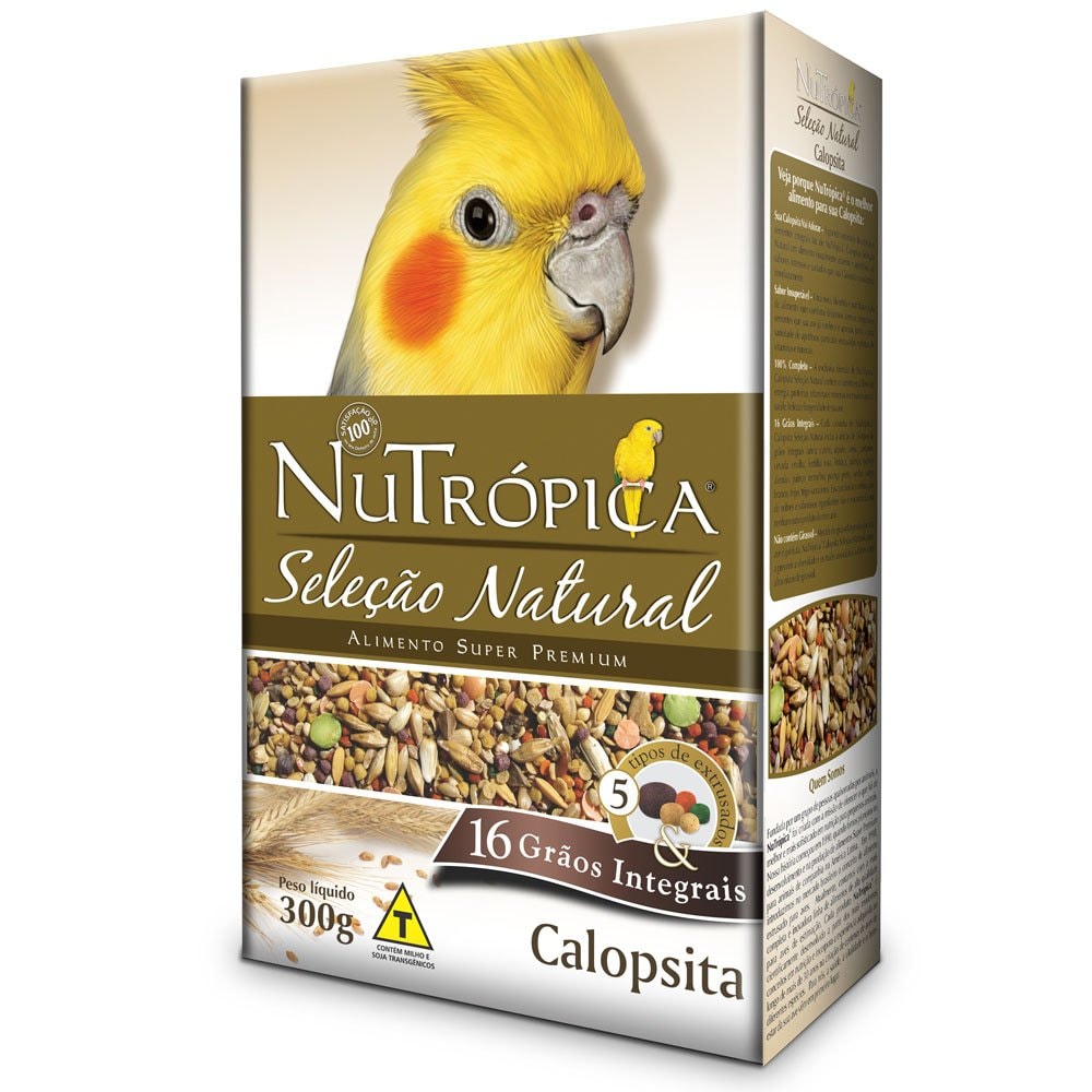 NuTrópica® Calopsita Seleção Natural é um alimento completo e balanceado para Calopsitas, desenvolvido a partir da combinação de 16 deliciosos cereais integrais e sementes que sua ave já conhece e aprecia, associados a uma variedade de apetitosas partículas extrusadas repletas de vitaminas e minerais. Sua fórmula exclusiva garante o correto aporte de nutrientes sem os problemas de excesso de gorduras e falta de vitaminas e minerais associados às misturas de sementes convencionais. NuTrópica® Calopsita Seleção Natural também tem a função de dieta de transição, promovendo de forma simples e gradual a adaptação de aves tradicionalmente alimentadas à base de sementes para alimentos extrusados.