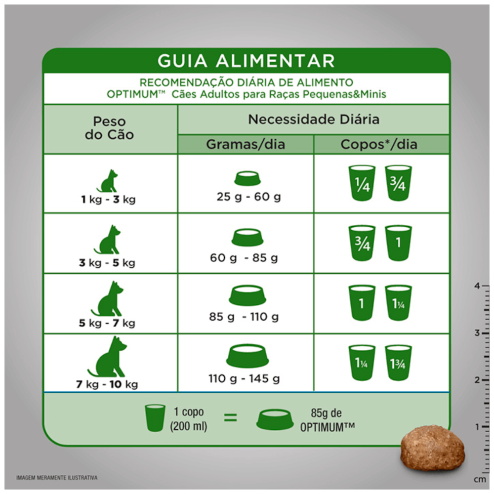 Segundo as recomendações do fabricante, essa ração Optimum cães é indicada para pets de raças pequenas e minis a partir dos 12 meses de vida.