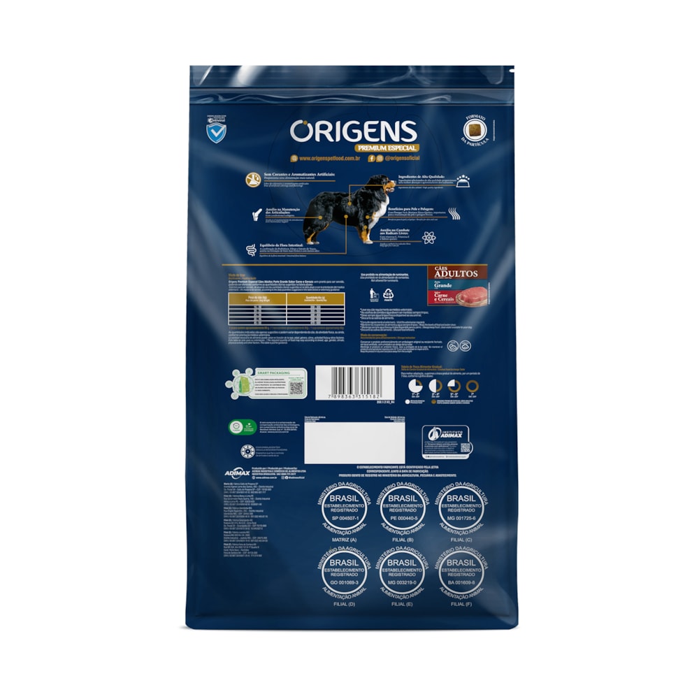 Ração Origens Premium Especial para Cães Adultos Porte Grande Carne e Cereais 15kg