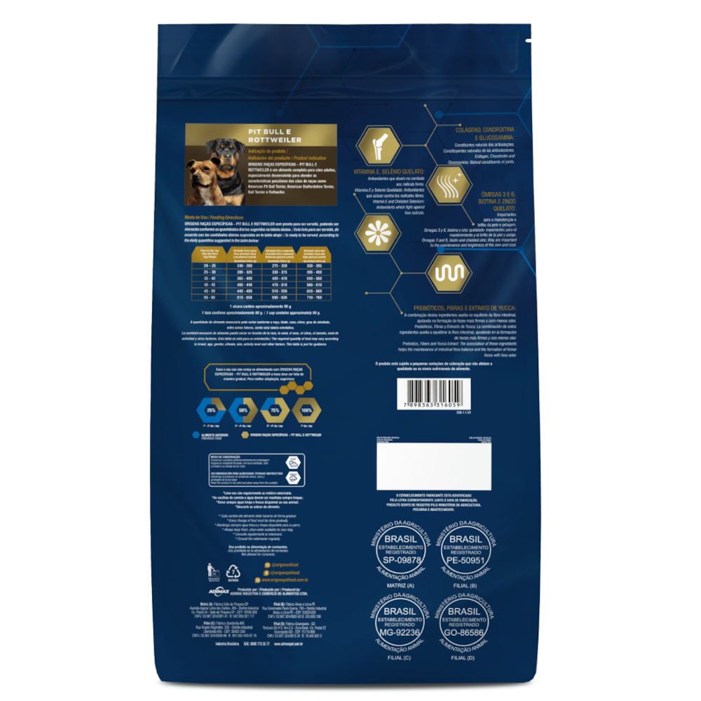 Cães precisam de alimentos que atendam às necessidades nutricionais de seus portes e idades. Assim, nada melhor do que oferecer uma refeição desenvolvida especificamente para a raça do seu peludo. Conheça agora a Ração Origens Raças Específicas Pit Bull e Rottweiler.