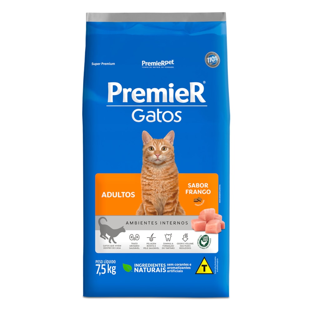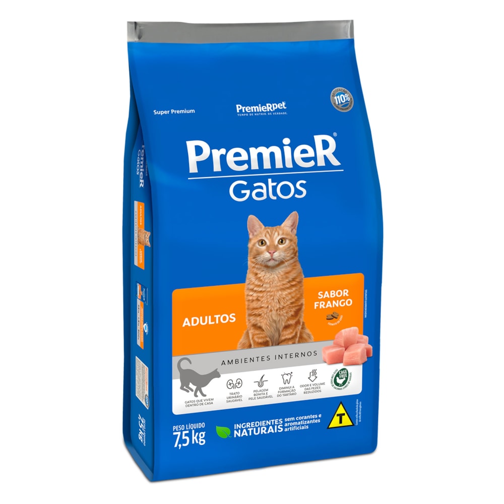 A Ração Premier Ambientes Internos Gatos Adultos Sabor Frango é um alimento especial perfeito para a vida diária dos gatos adultos. Através de uma combinação de alimentos nobres que realçam a beleza da pelagem. O Alimento Ração Premier Ambientes Internos Gatos Adultos Sabor Frango não possui corantes e nem aromatizantes artificiais e cuida do trato urinário, além de diminuir a formação de tártaro.