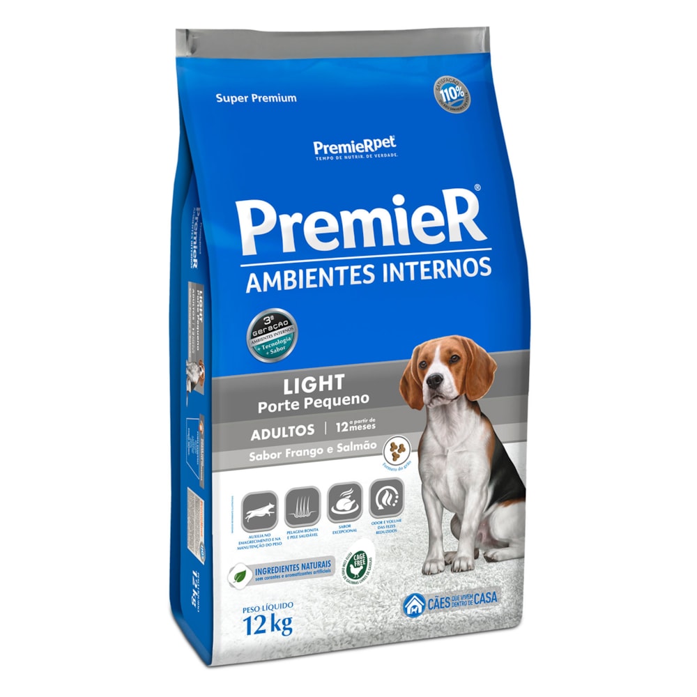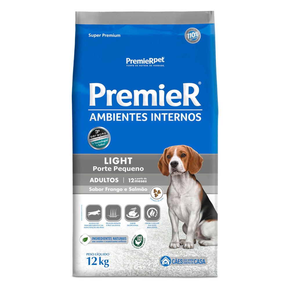 Ração Premier Light Ambientes Internos Cães Adultos Raças Pequenas Frango e Salmão 12,0 kg