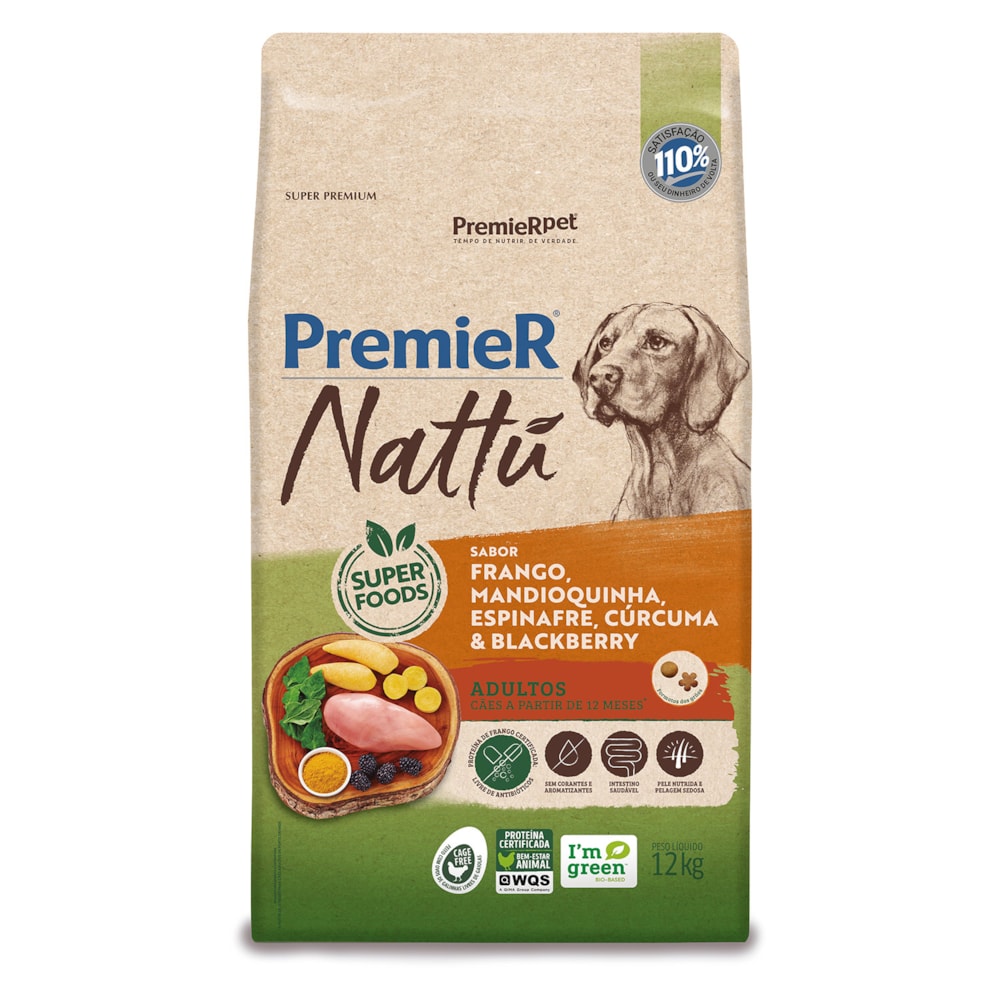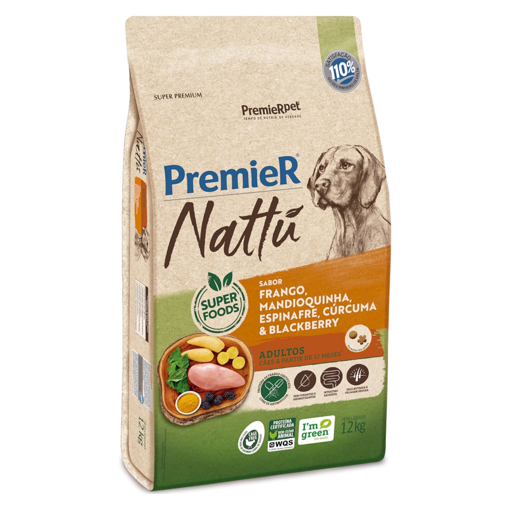 Ração Premier Nattu Cães Adultos Sabor Mandioquinha 12kg