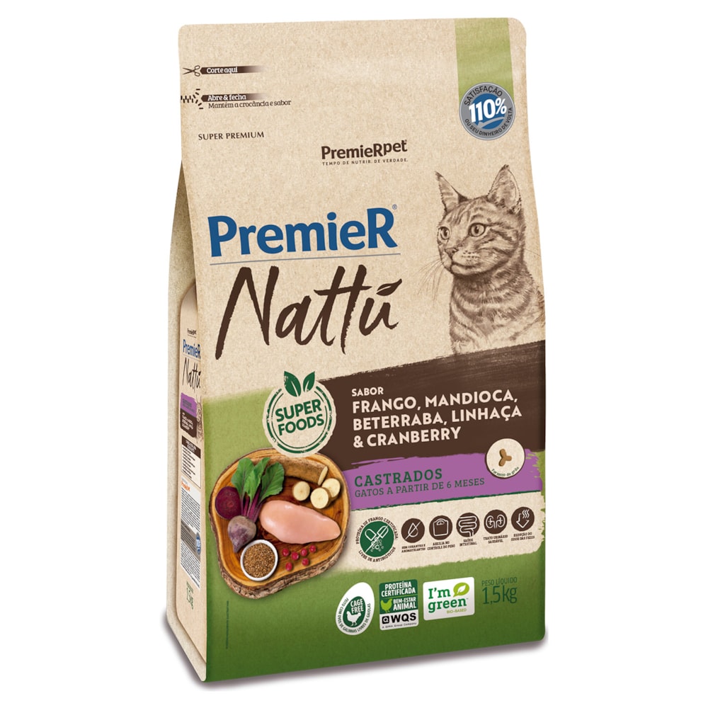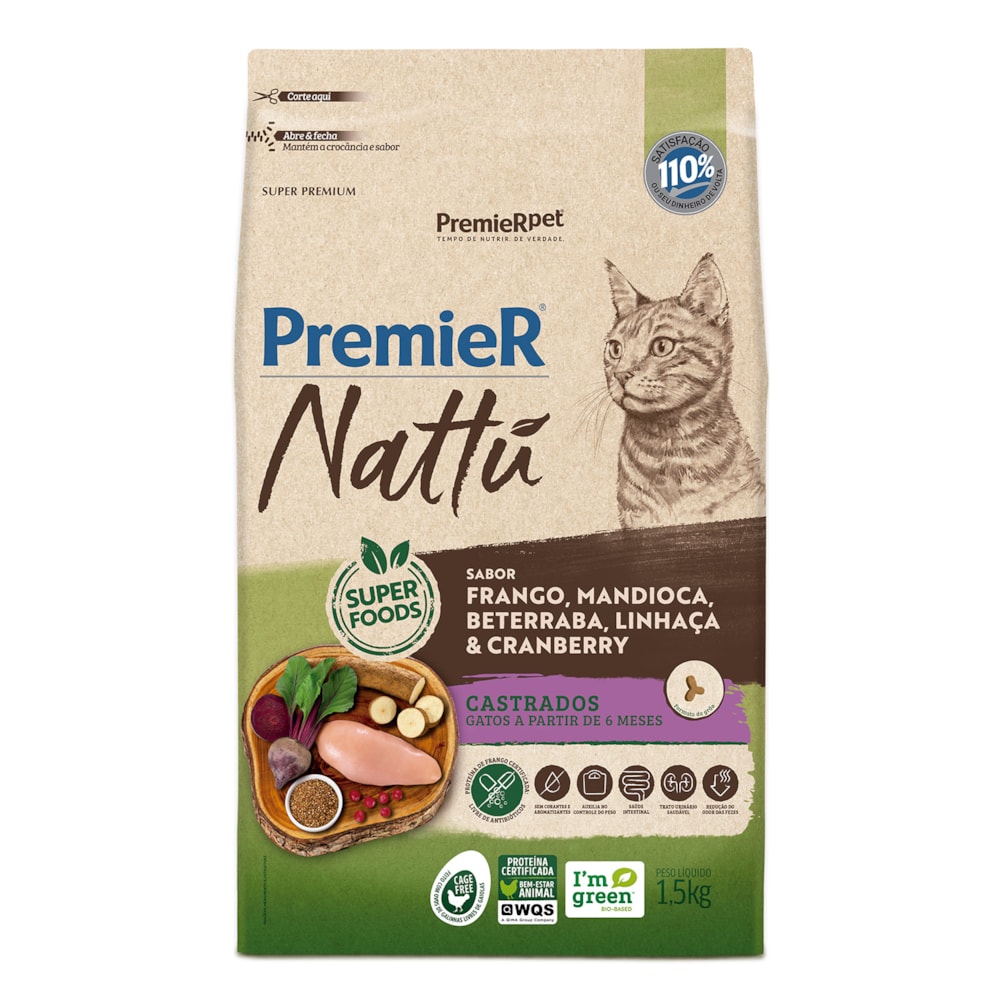 Ração Premier Nattu Gatos Castrados Mandioca 1,5 kg