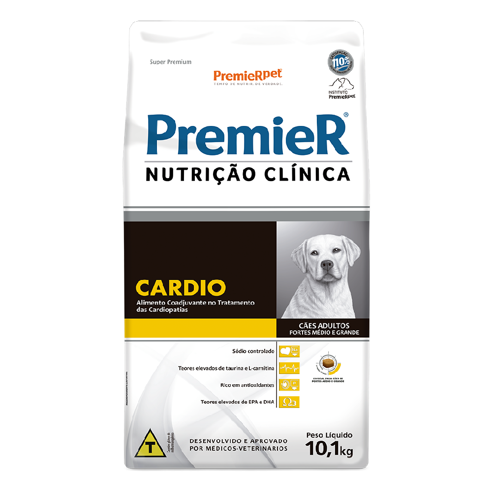 Como um alimento auxiliar e coadjuante ao tratamento da doença ou insuficiência cardíaca de cães a Ração Premier Nutrição Clínica Cardio Para Cães Adultos oferece além, uma alimentação especialmente formulada para tais cães. Com o objetivo de prover as calorias necessárias, evitar faltas e exageros nutricionais, diminuir as doses e os medicamentos que o animal necessita, também reduz maiores complicações, melhora a qualidade de vida e diminui a progressão da doença. Com 24% de proteína, é indicado para cães adultos em tratamento da doença ou insuficiência cardíaca. A Ração Premier Nutrição Clínica Cardio Para Cães Adultos não contém corantes e nem aromatizantes artificiais. Sua composição também é enriquecida de Vitamina A, C, E, B12, D3 e K3 que facilitam a absorção e equilibram a demanda nutricional do seu cão, L-Carnitina para o controle do peso ideal, Taurina para uma longevidade ativa, Glicosamina e Condroitina que protegem as articulações e DHA que estimula a capacidade de aprendizagem, proporcionando mais vigor para as atividades do seu cão dia a dia.