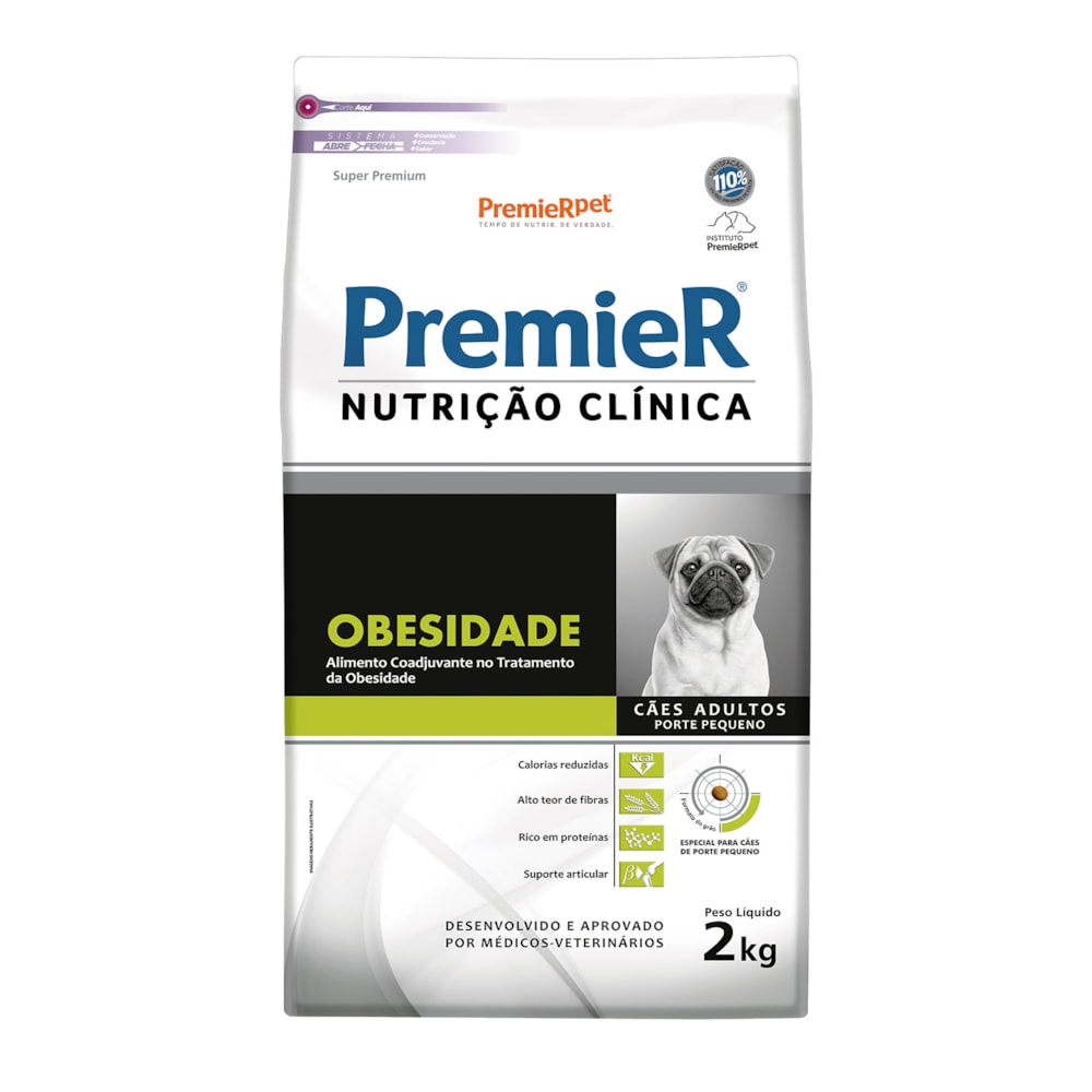A Ração Premier Nutrição Clínica Obesidade para Cães Adultos de Pequeno Porte é um alimento coadjuvante indicado para cães adultos de portes médio e grande com excesso de peso, para a obtenção do escore corporal ideal. Este alimento pode ser também indicado nos casos de constipação responsiva a fibras e hiperlipidemia. Este produto deve ser utilizado como auxiliar, portanto não substitui o tratamento convencional.